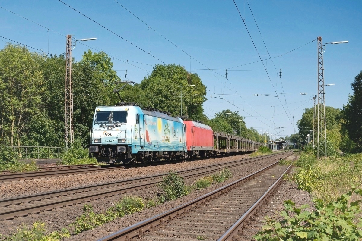 Dto. 186 364-6 am 10.08.2022 im Bückeburger Bf (HBKB) mit Wagenlok 145 093-1
