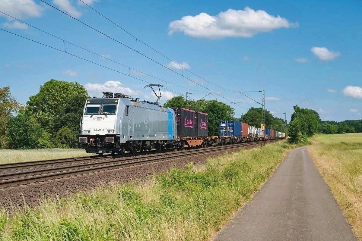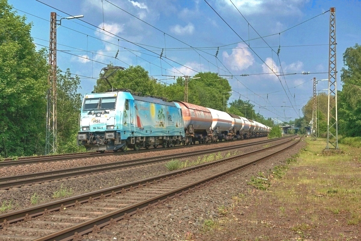 Dto. 186 364-6 am 20.05.2021 bei Bückeburg (HBKB) Echtorf mit dem Voll-BLG