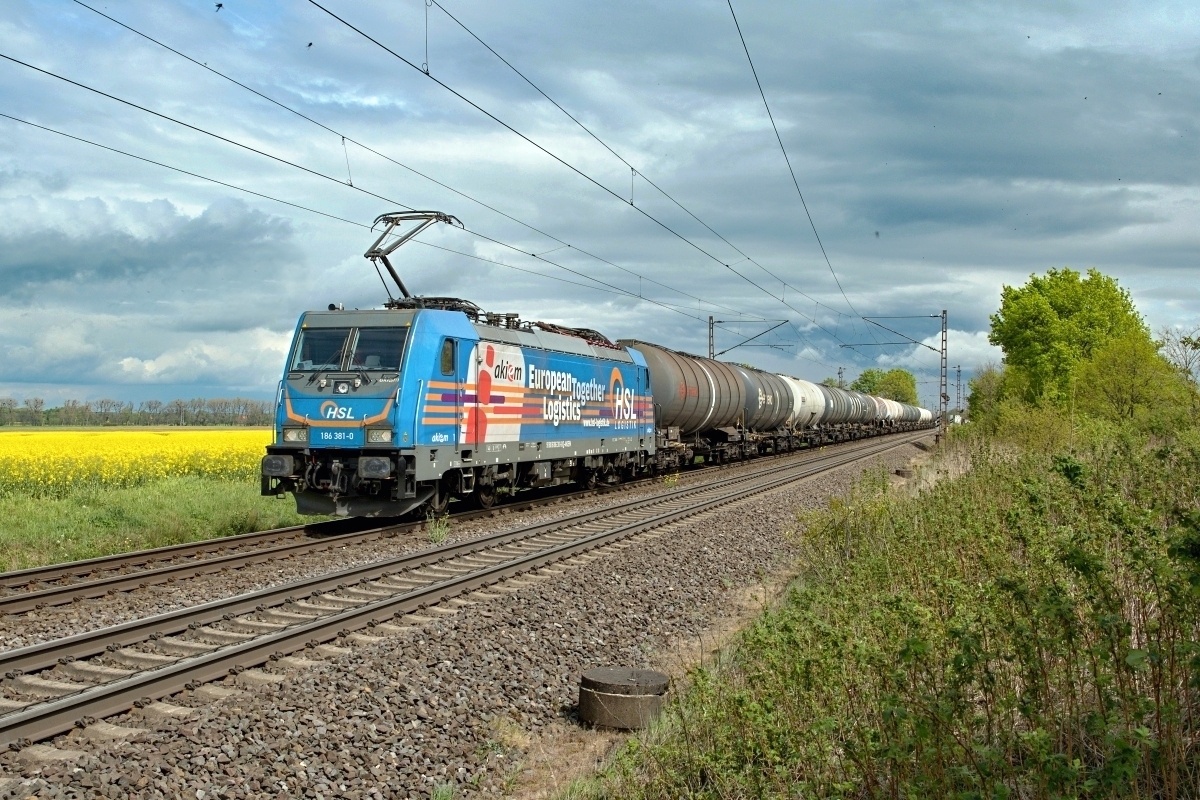 Dto. 186 181-4 am 21.03.2020. Hier war die Lok bei Merseburg (LMG) mit dem