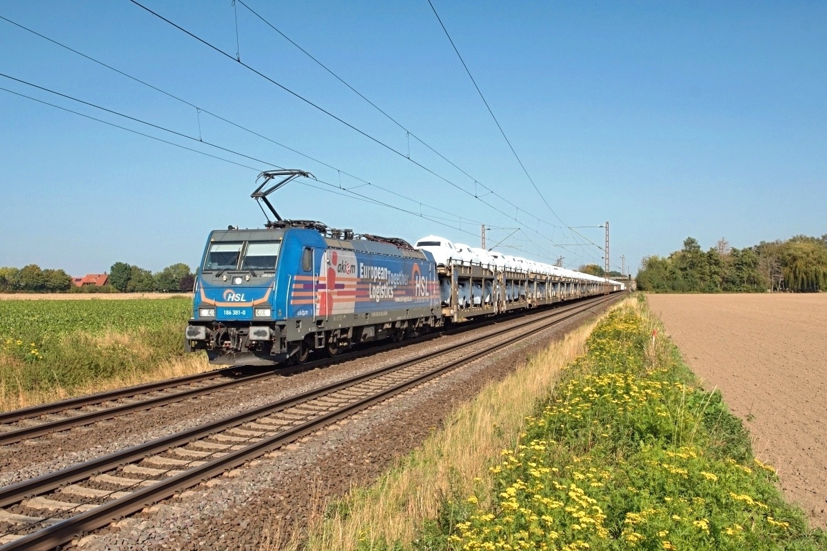 einem Voll-BLG Autozug Rtg. Westen/Lehrte...