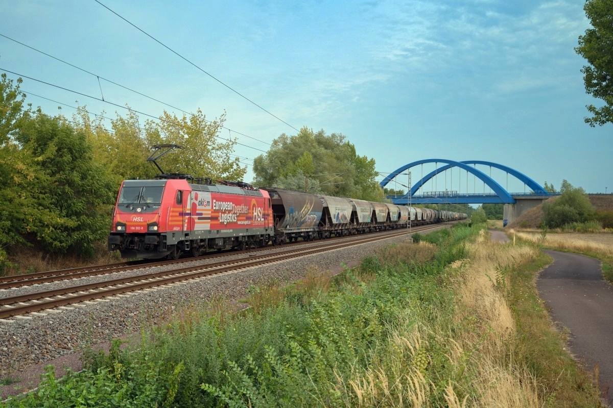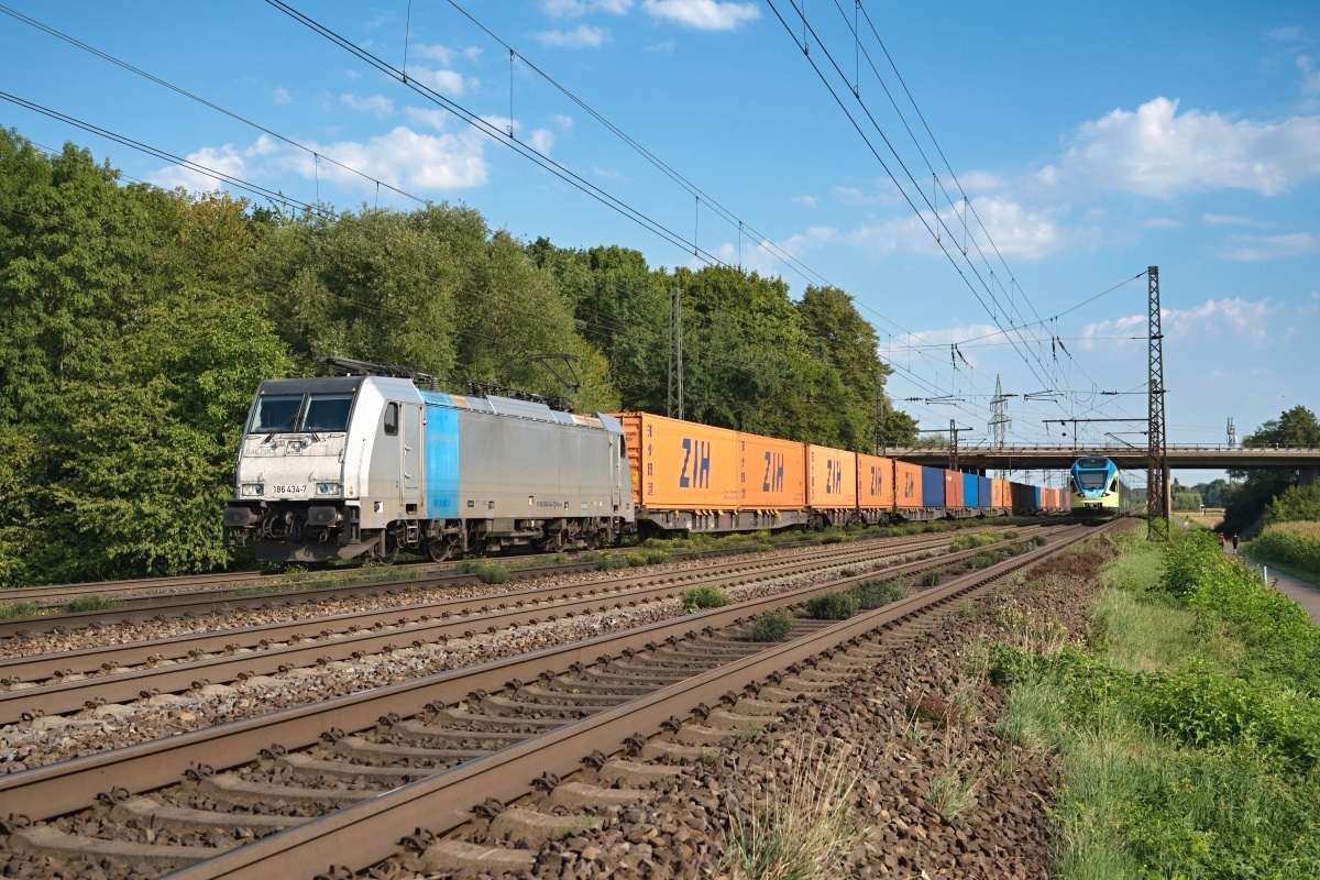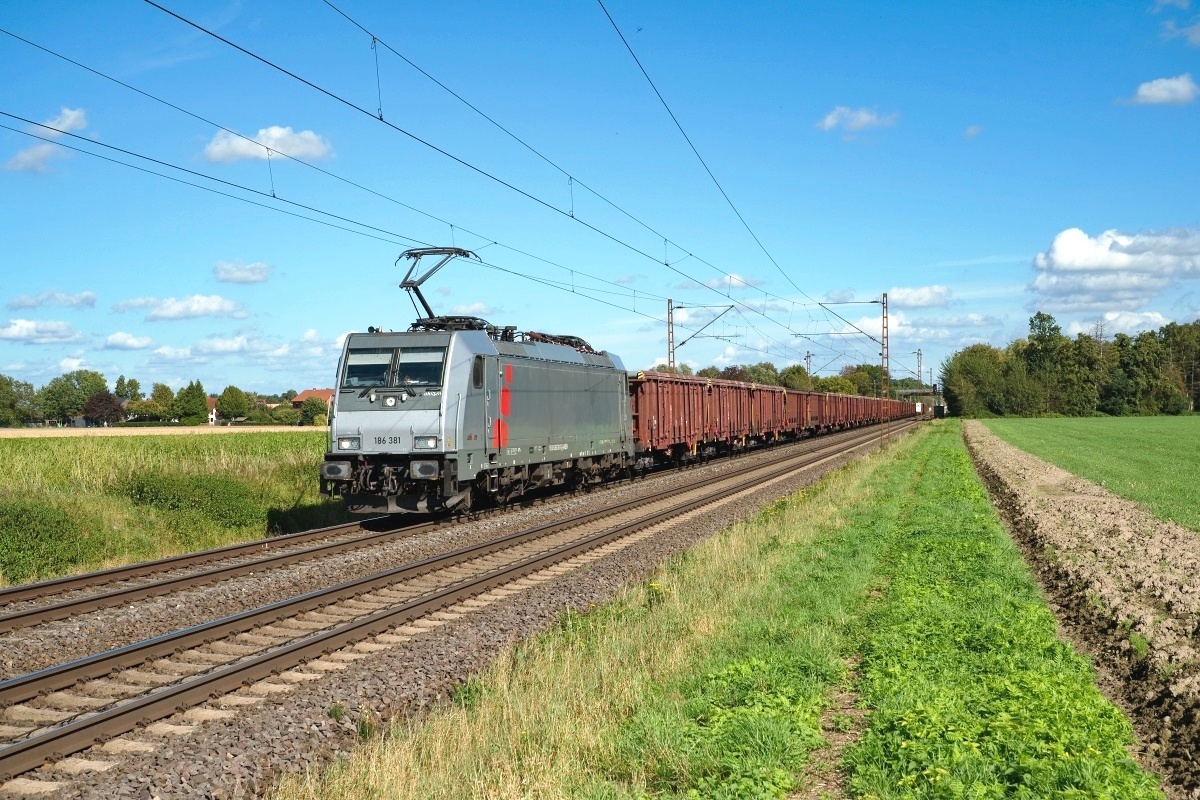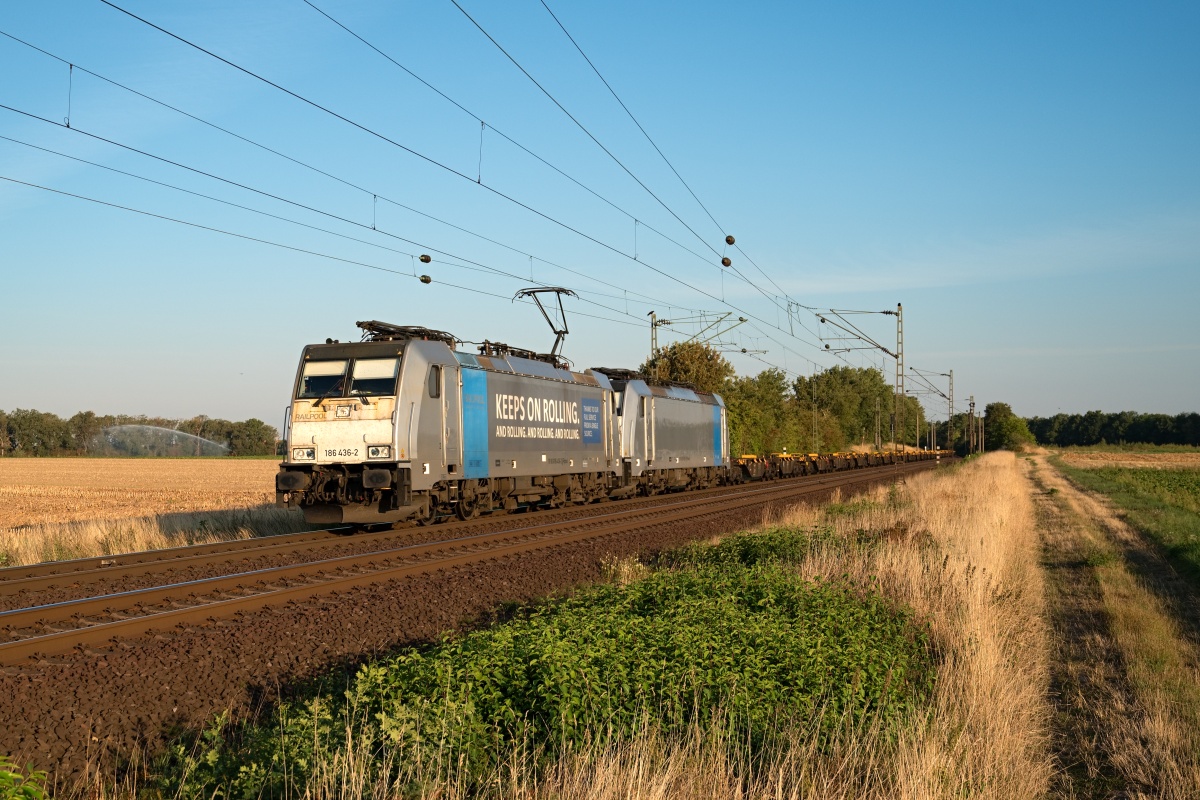 Dto. 186 436-2 am 04.09.2022 bei Woltorf (HWOT) mit Wagenlok 186 292-9 (NVR: