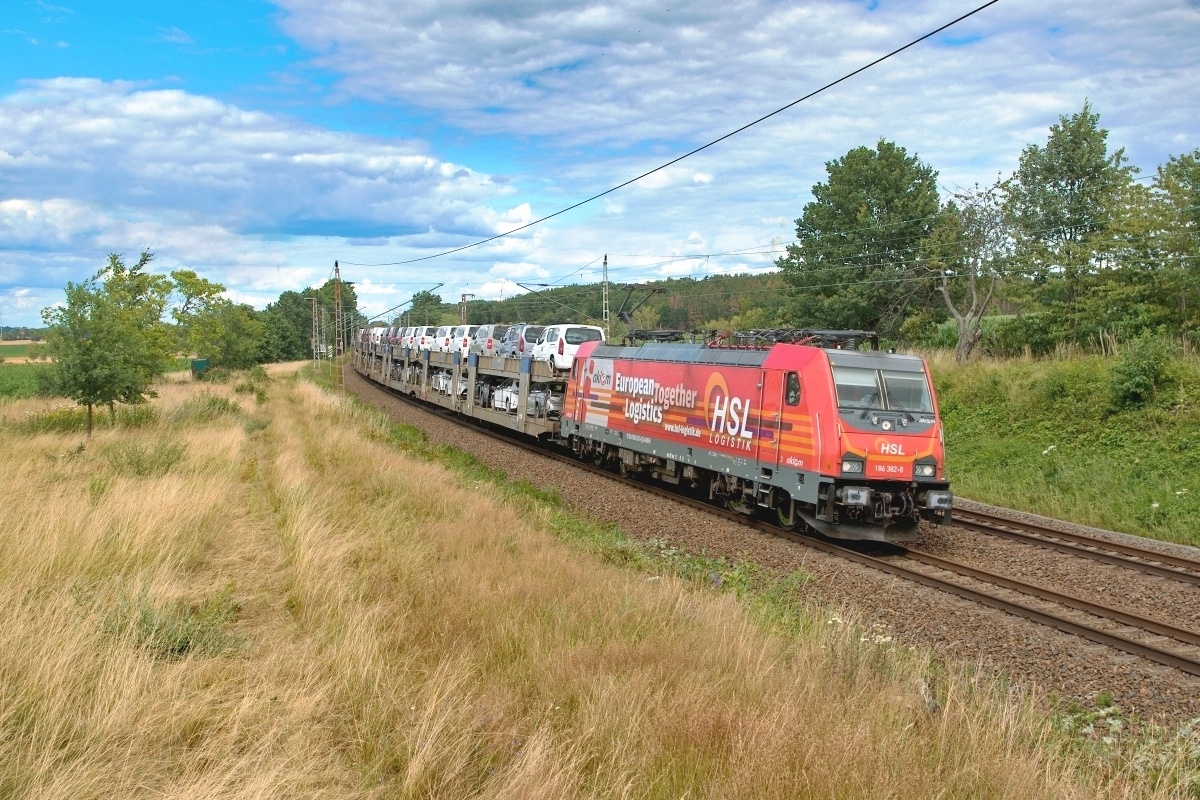 einem Voll-BLG Autozug Rtg. Osten/Hannover...