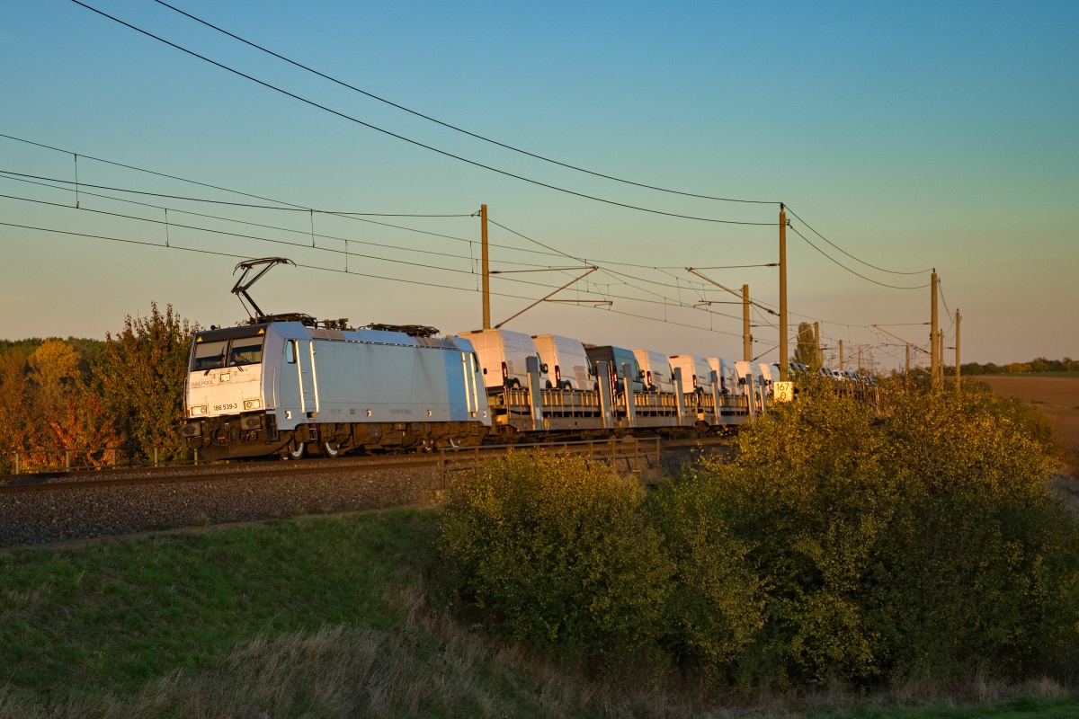 Dto. 186 533-6 morgens am 25.10.2024 bei Dreileben-Drackenstedt (LDD)