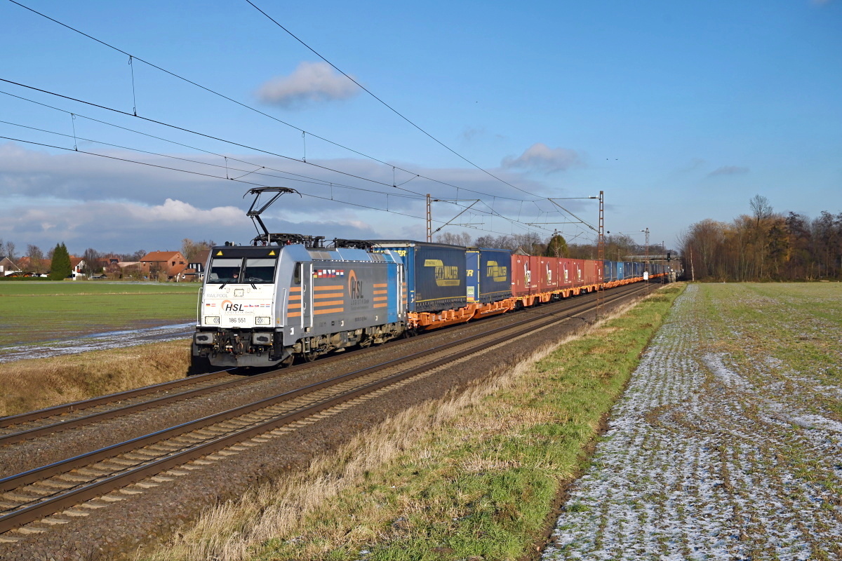 Dto. 186 551-8 am 18.01.2024 bei Kirchhorsten (HKHN) mit dem KLV DGS 42360