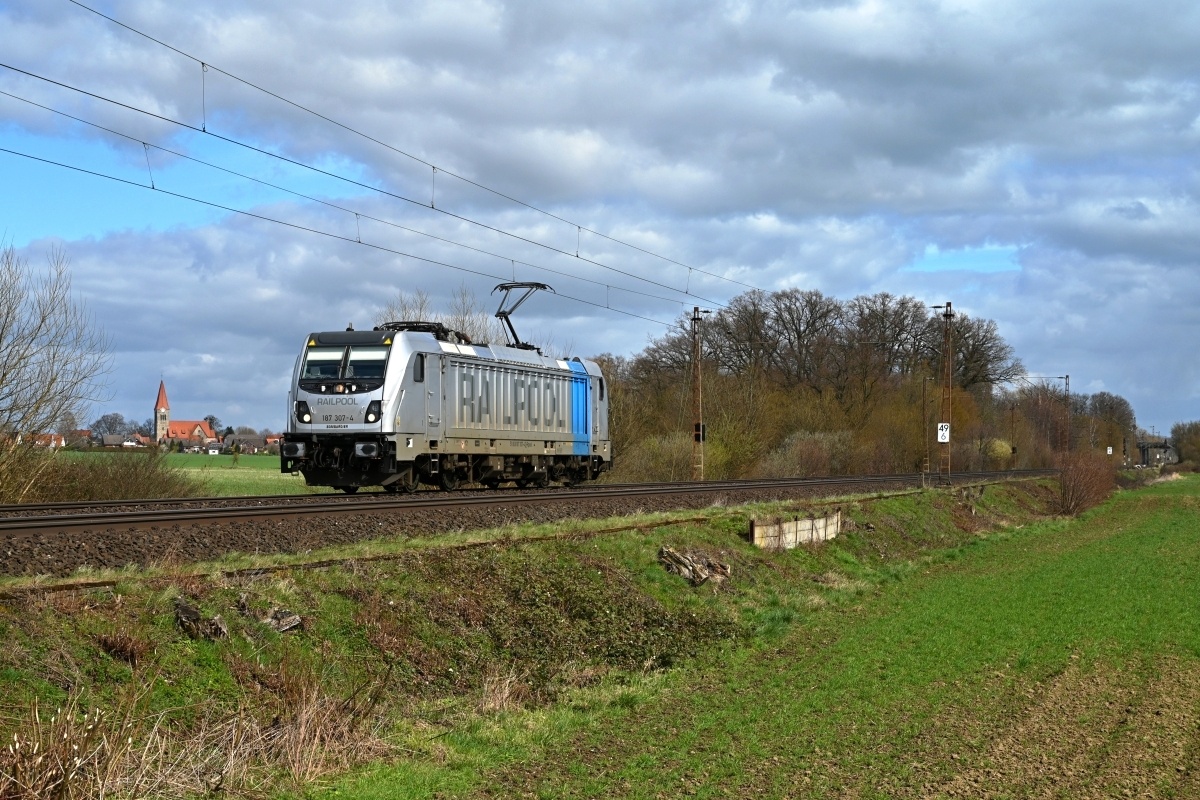 Dto. 187 537-6 am 01.04.2021. Hier war die Lok bei Bückeburg (HBKB) Evesen