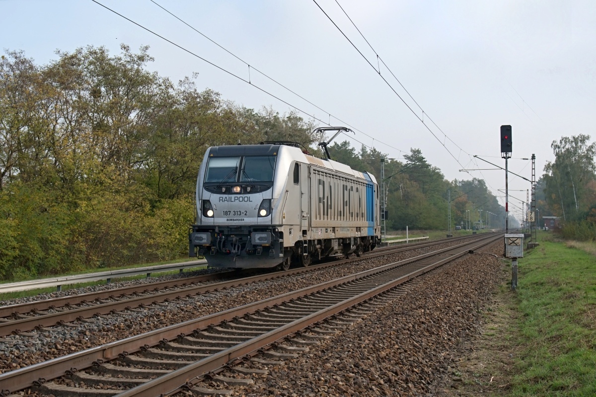 Dto. 187 313-2 am 24.10.2019 als Tfzf bei Wahlitz (LWH) Rtg.