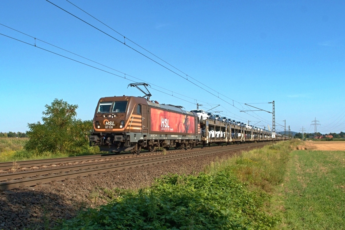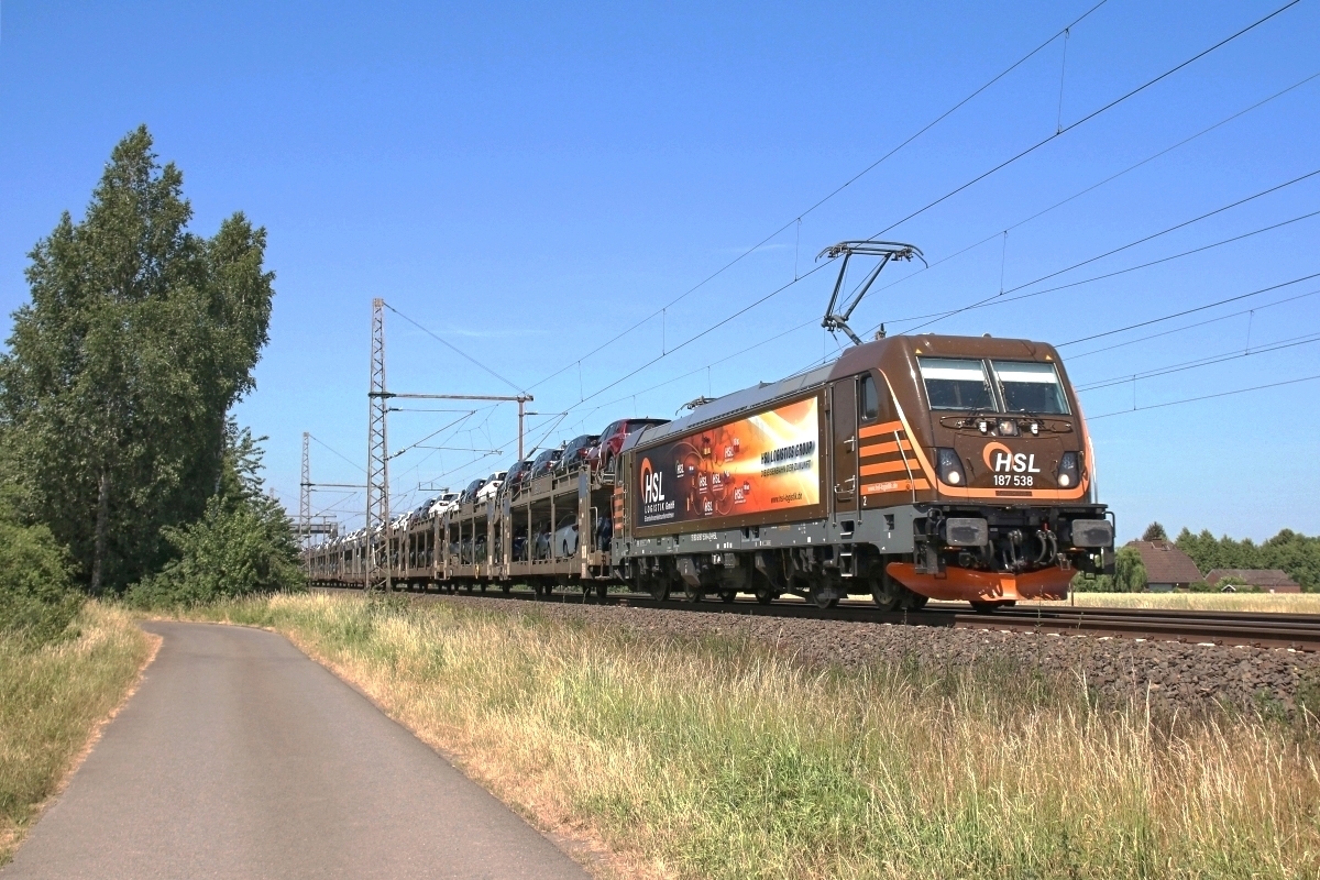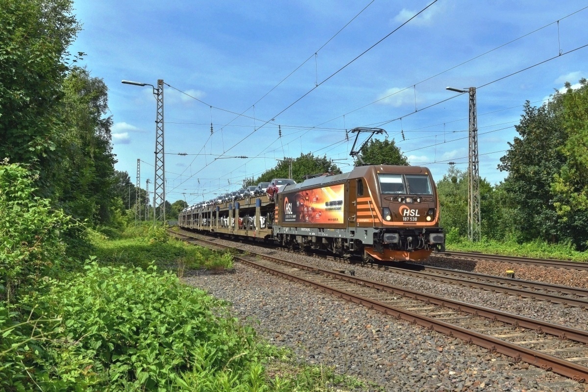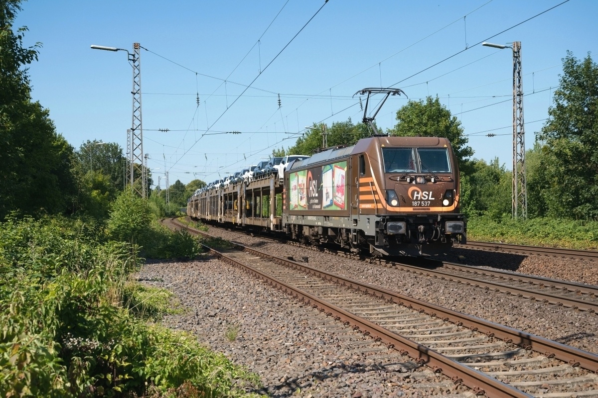 Dto. 187 538-4 am 30.07.2021 im Bückeburger Bahnhof mit dem Voll BLG Autozug