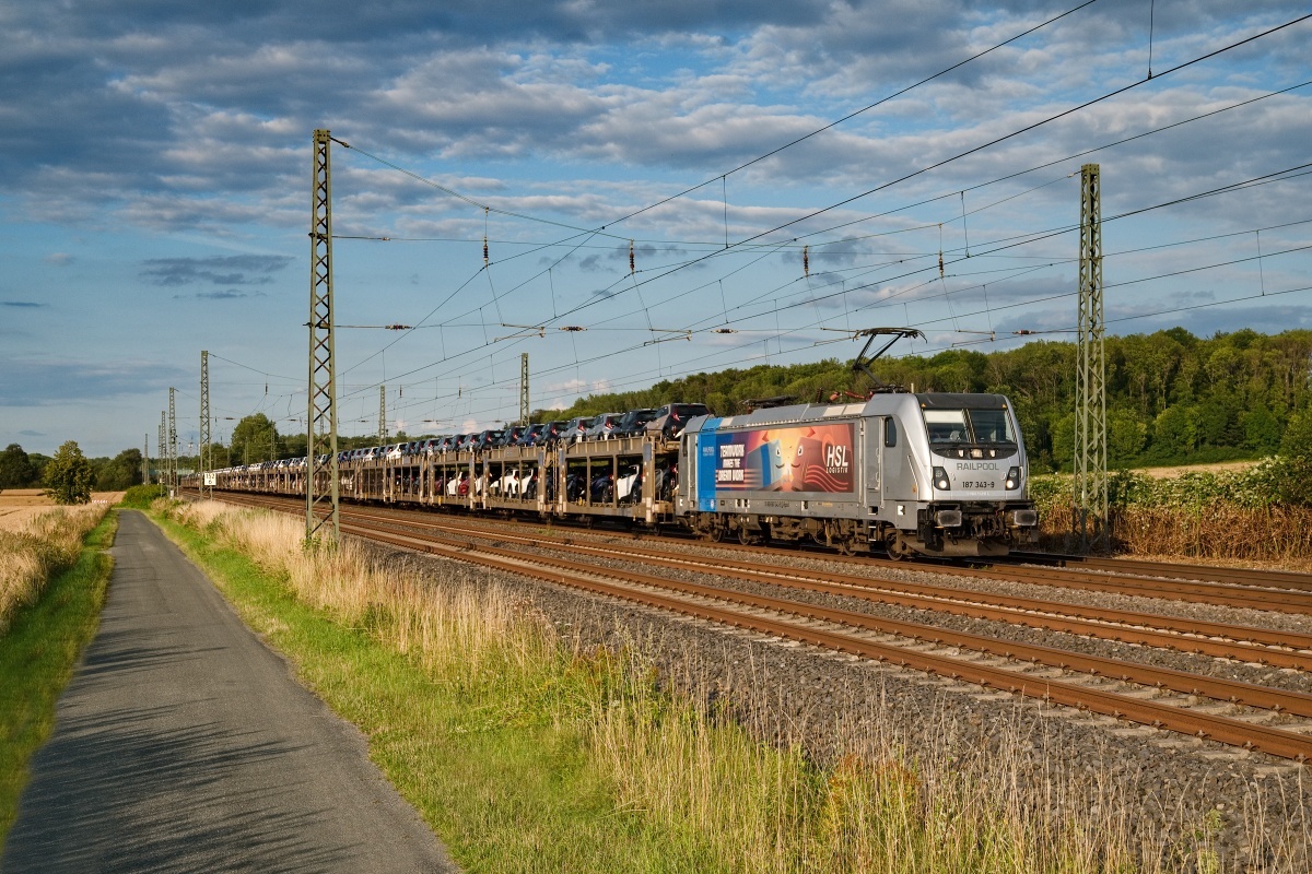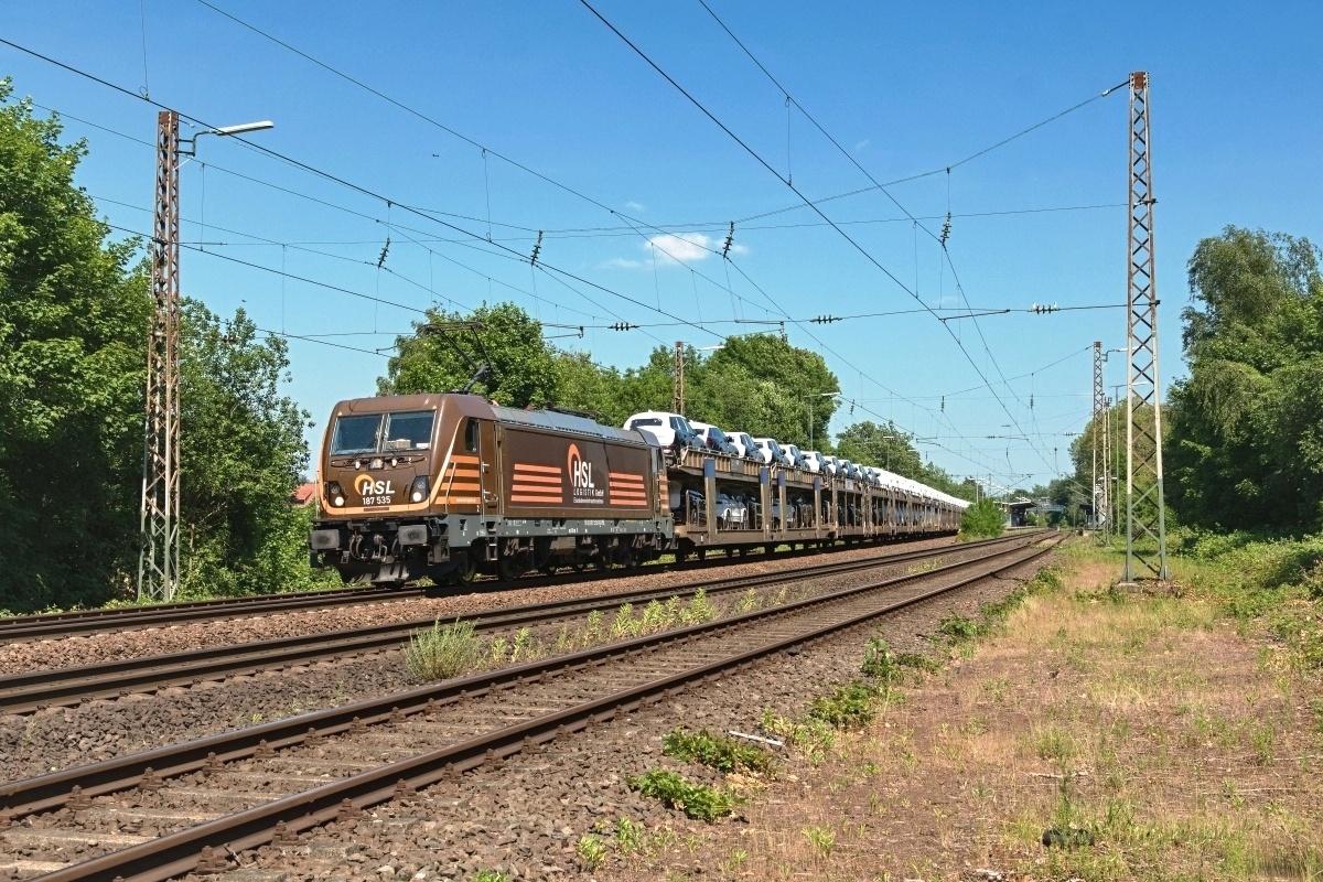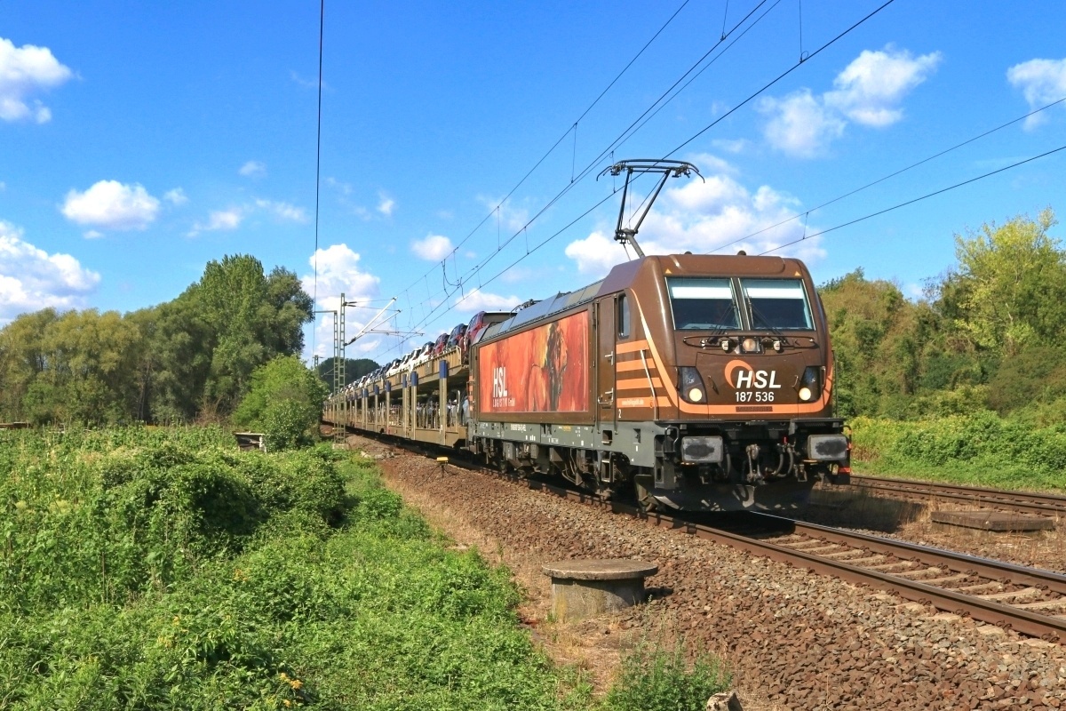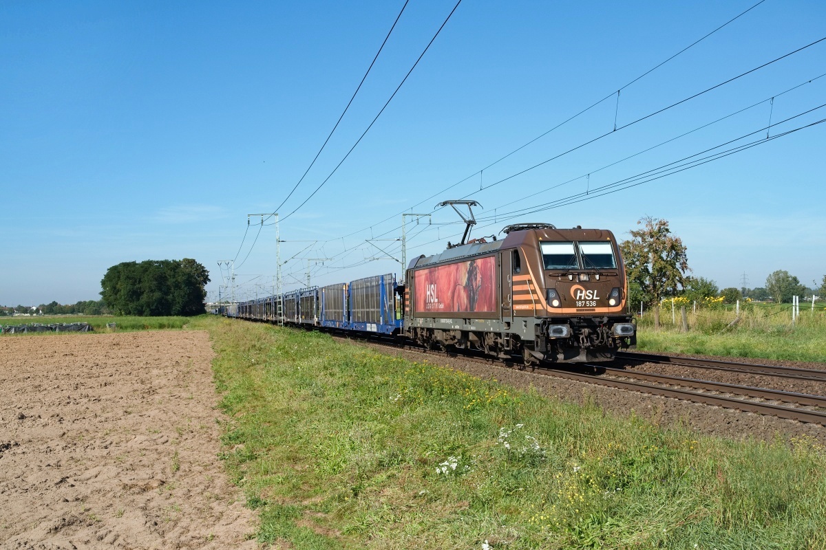 Dto. 187 538-4 am 30.07.2021 im Bückeburger Bahnhof mit dem Voll BLG Autozug