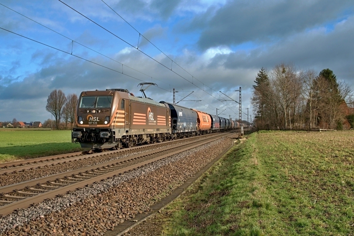 Dto. 187 535-0 am 19.02.2020. Hier war die Lok bei Bückeburg-Echtorf mit dem