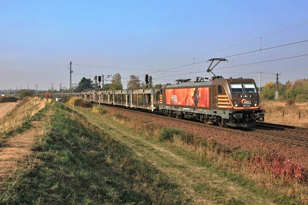 Dto. 187 505-3 am 22.10.2019. Hier war die Lok bei Ahlten (HALT) mit einem