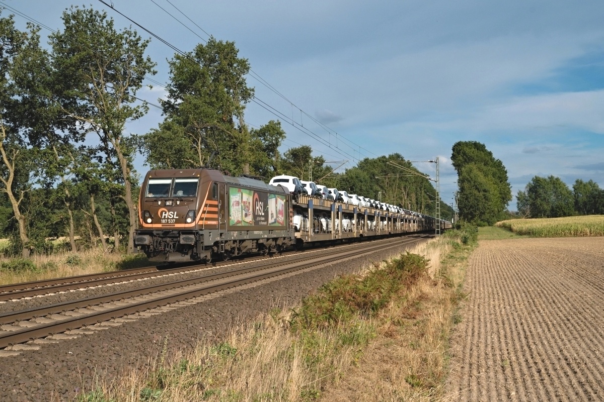 einem Voll-BLG Autozug Rtg. Osten/Hannover...