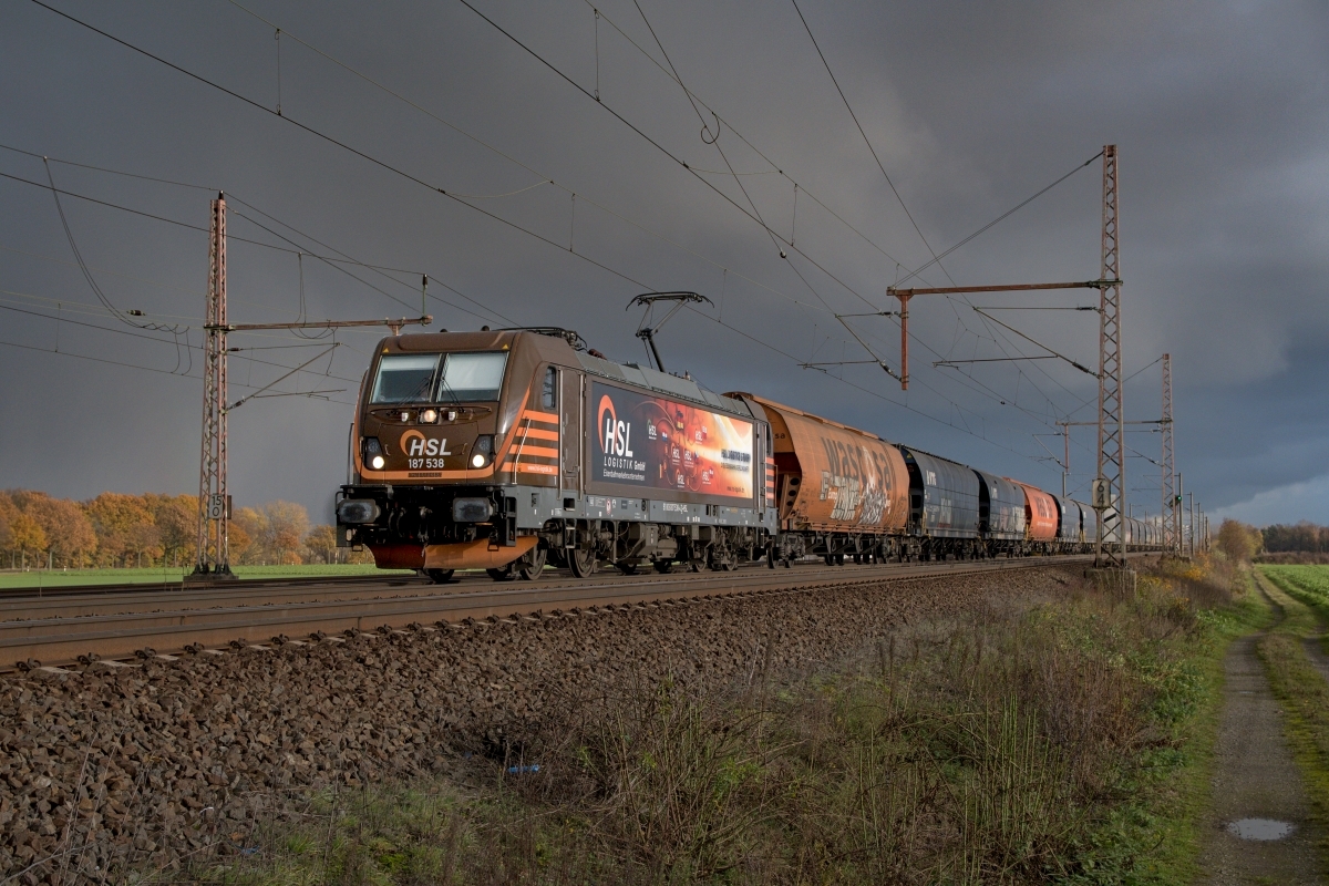 Am 29.11.2019 passierte hier 187 538-4 ganz kurz vor einem extremen