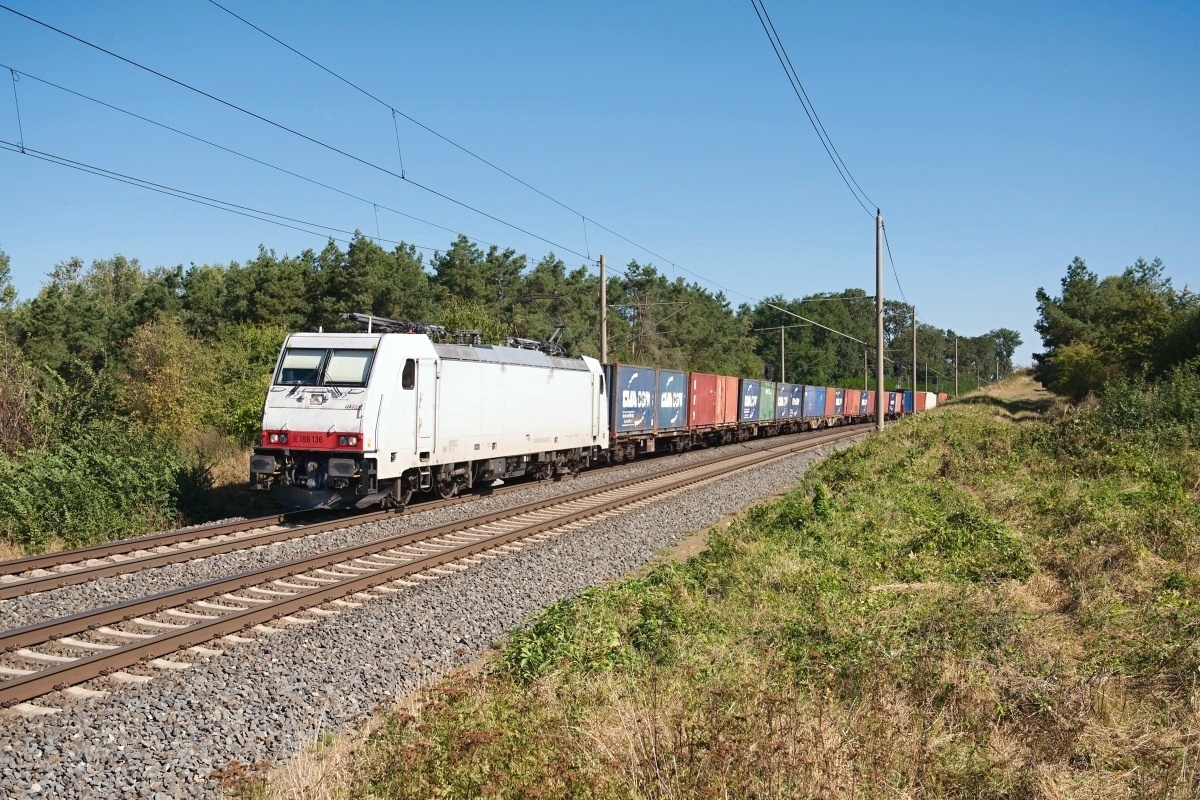 Dto. 186 136-8 am 22.09.2024 bei Ovelgünne (LOV) mit dem Containerzug DGS