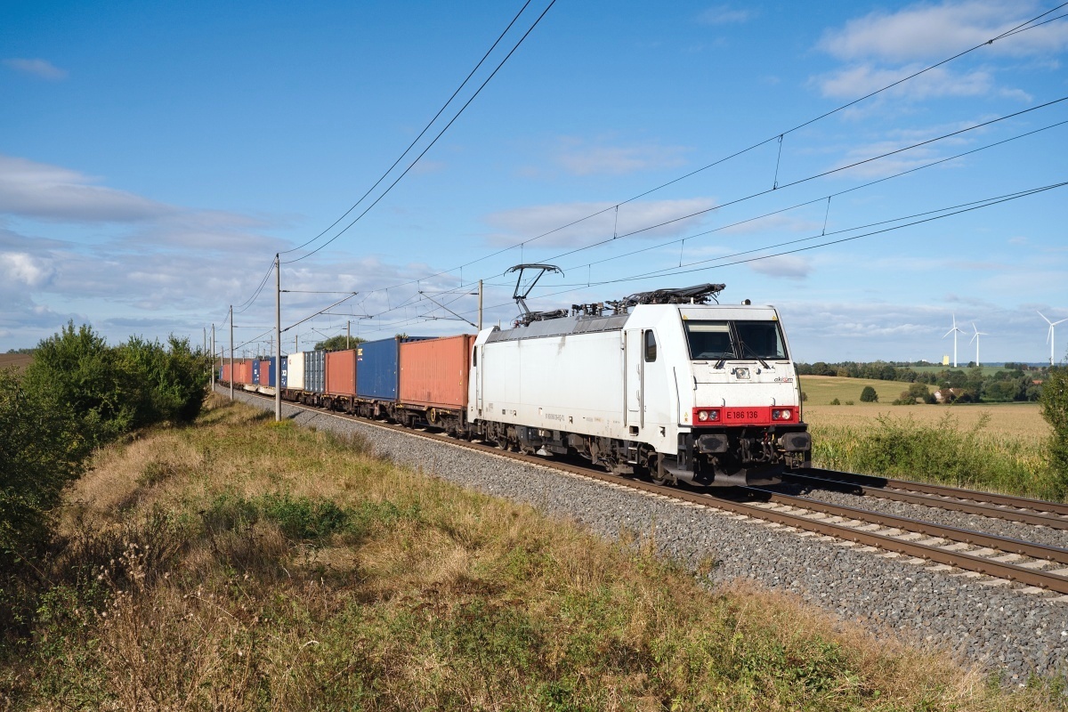 Dto. 186 136-8 am 11.10.2024 bei Dreileben-Drackenstedt mit einem