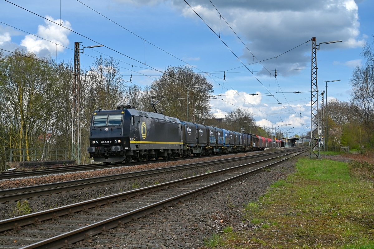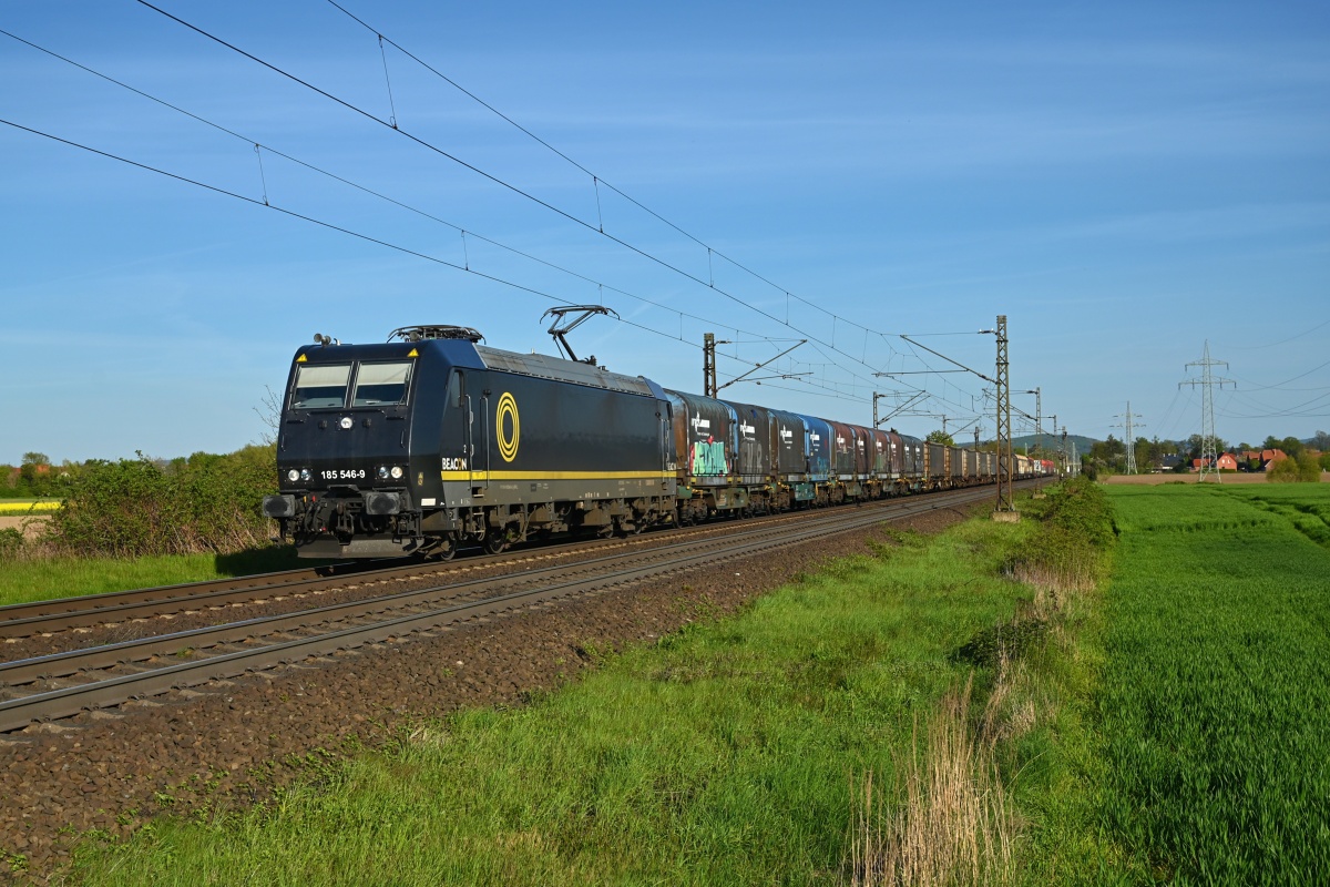 Dto. 185 546-9 am 03.05.2023 bei Bückeburg (HBKB) Berenbusch mit dem Nievenheimer DGS