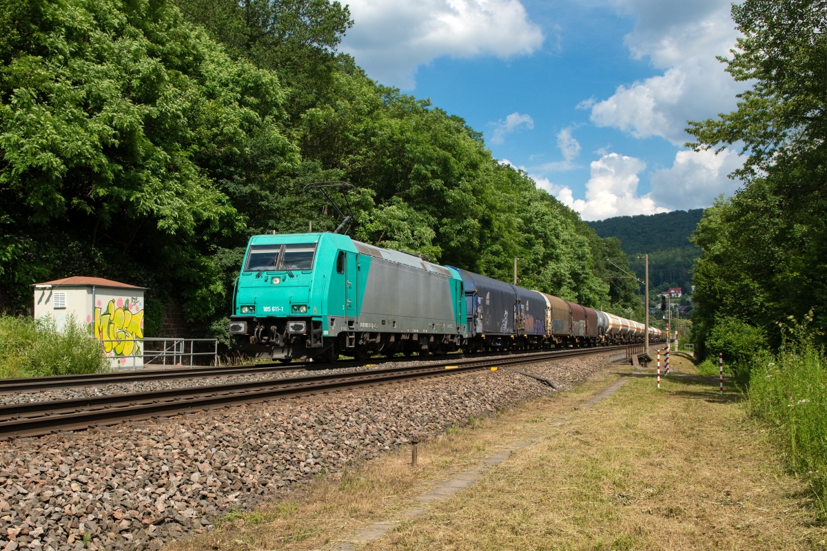 Dto. 185 611-1 am 03.07.2021 einige Zeit später mit demselben Zug wie zuvor