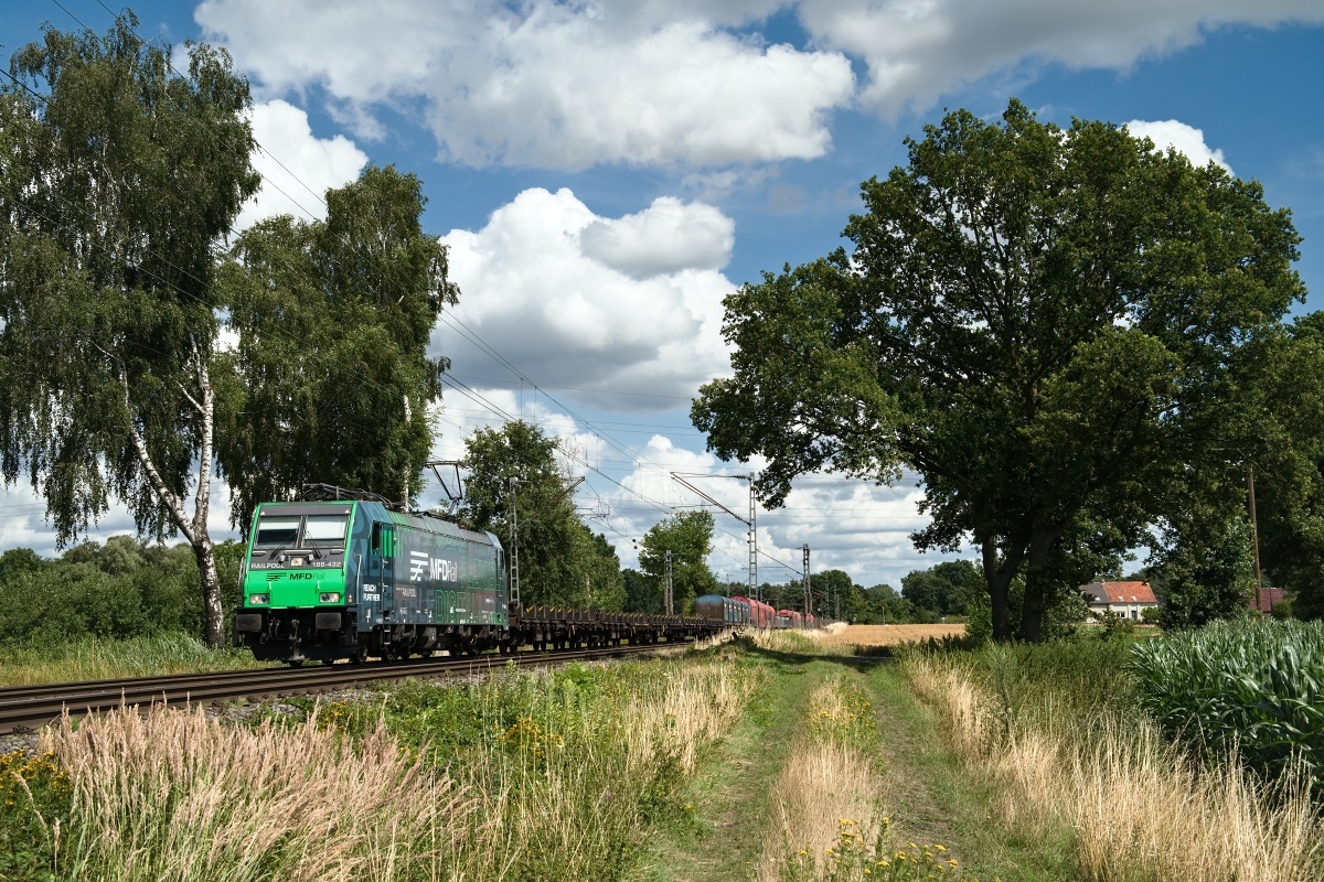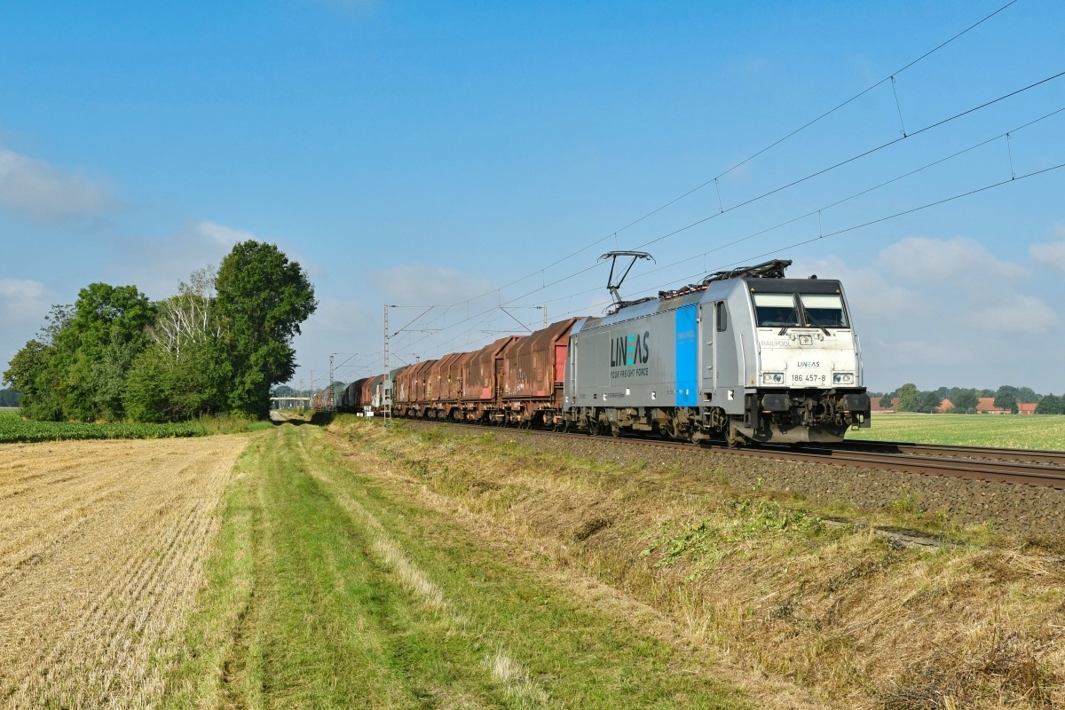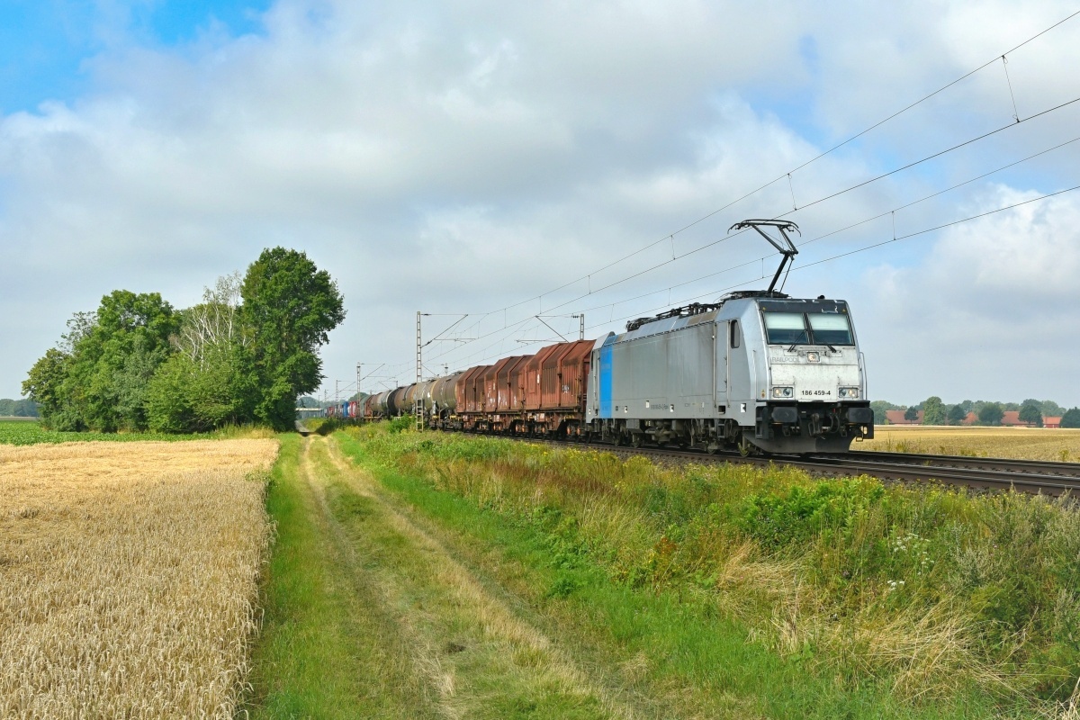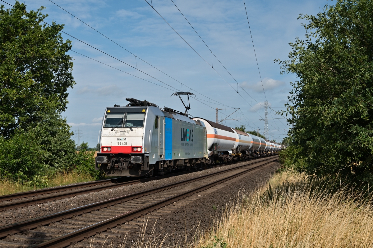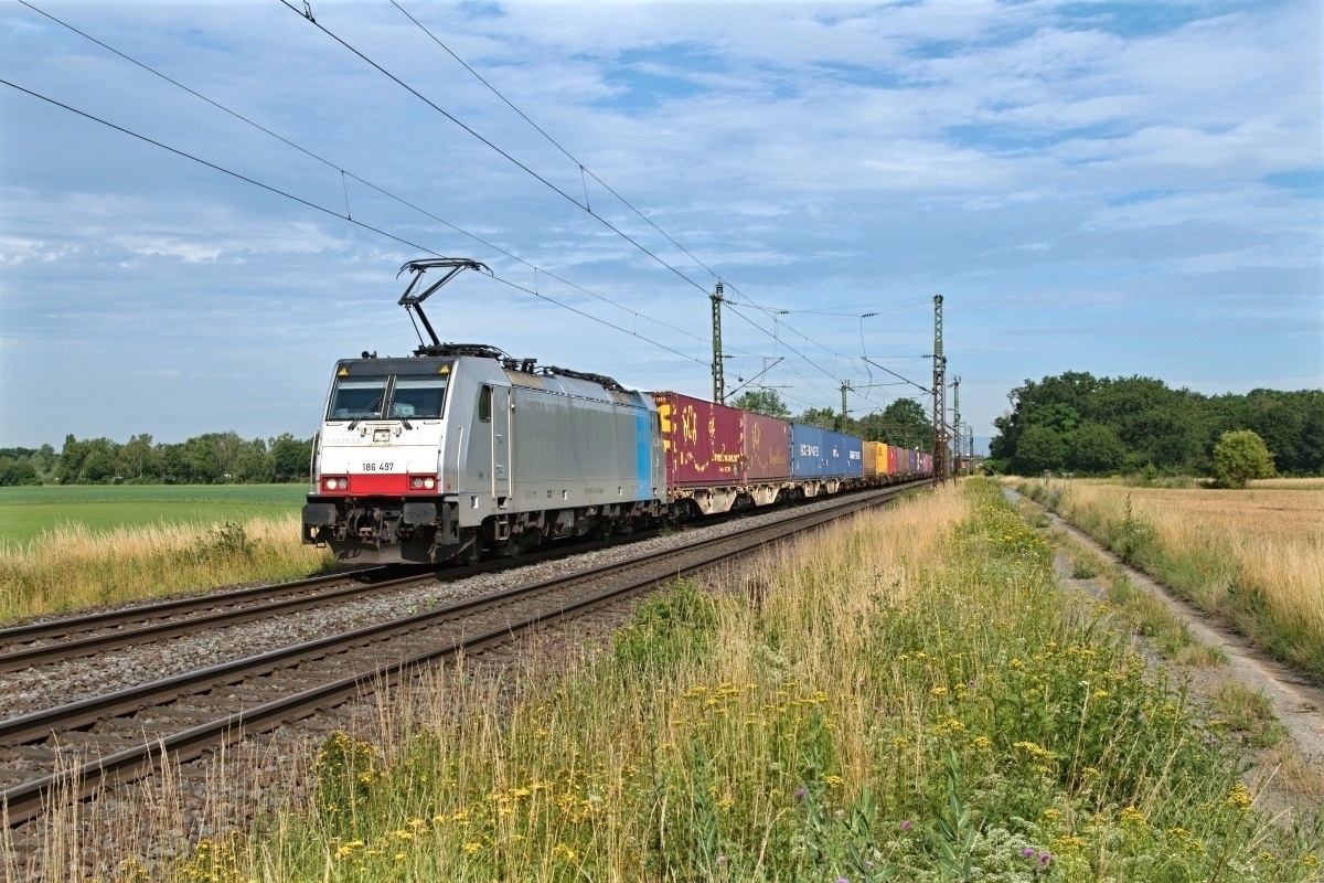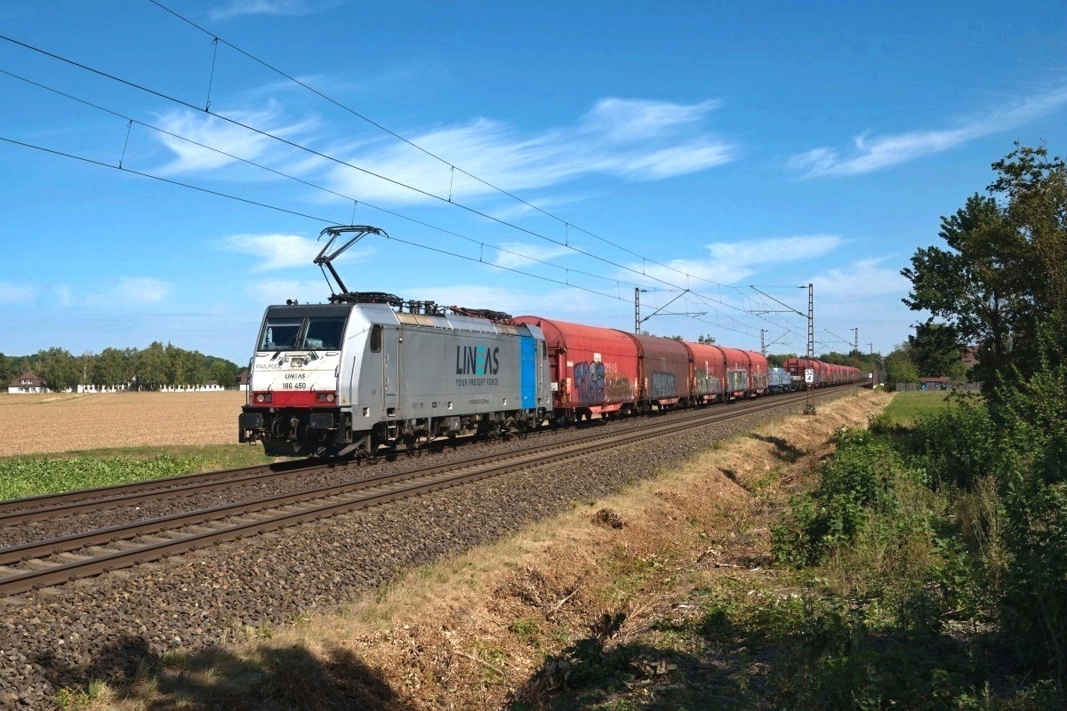 Dto. 186 508-8 am 07.08.2021 bei Lindhorst (HLH). Die Lok wurde