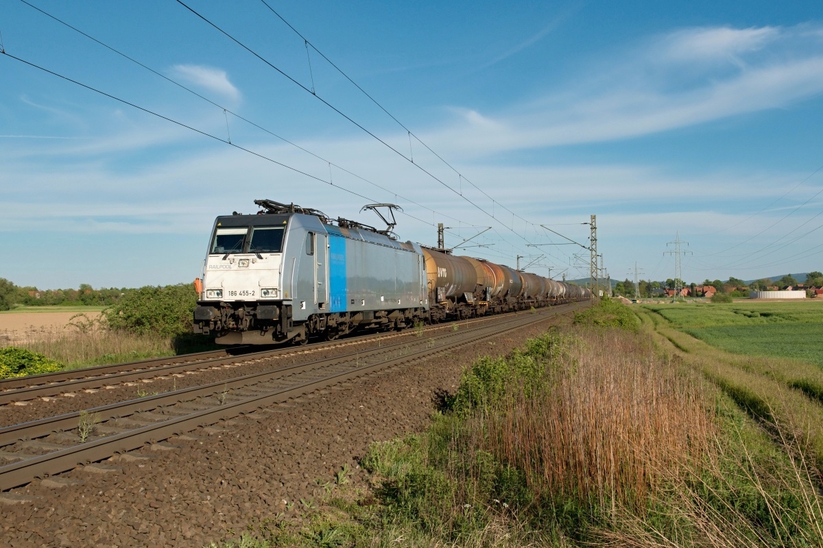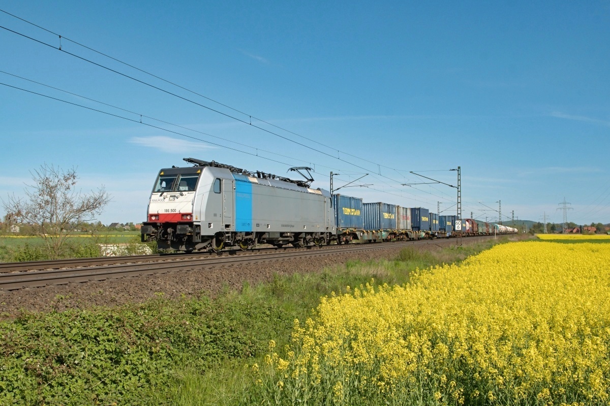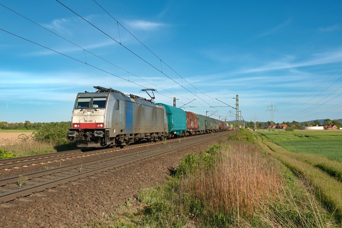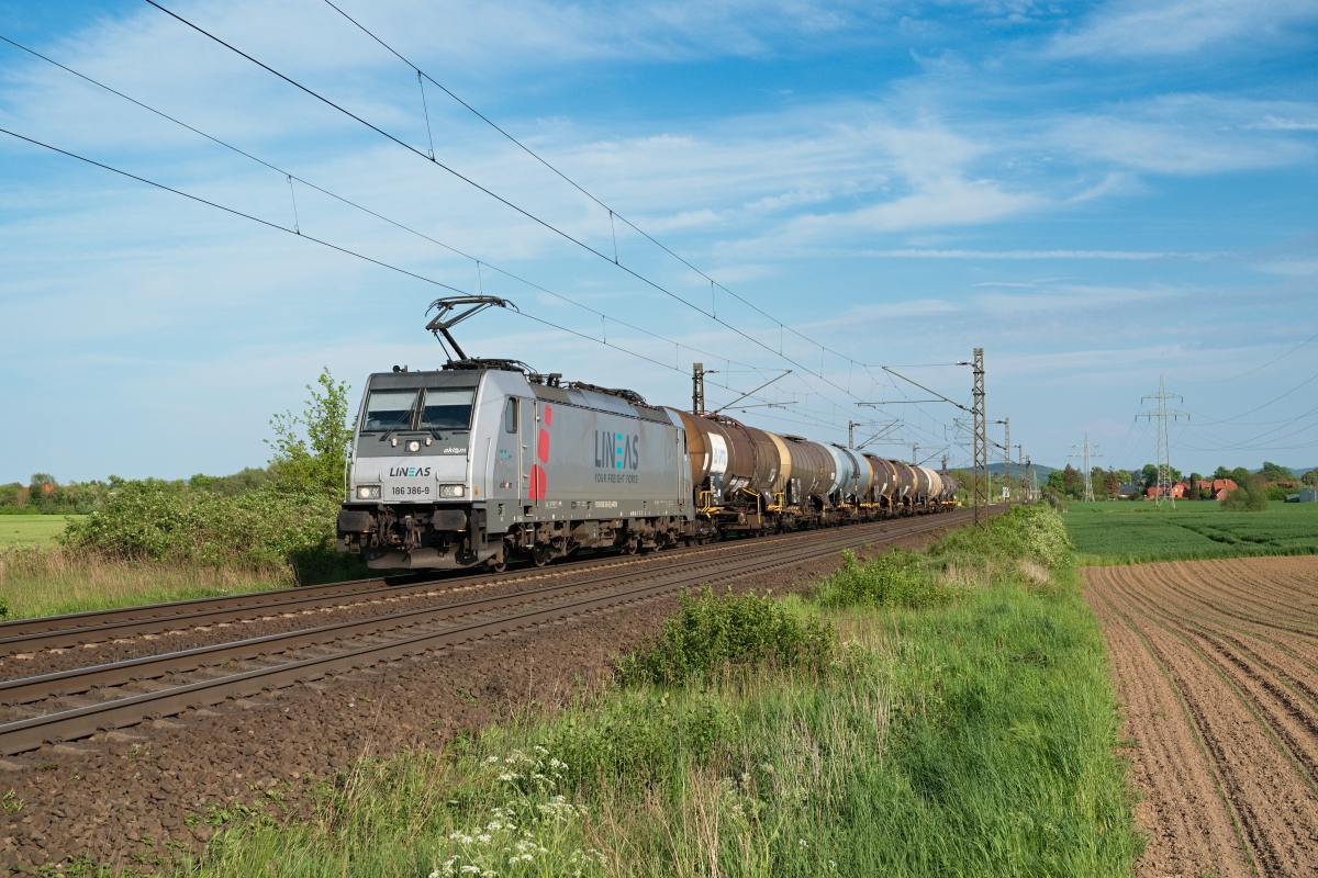 Dto. 186 386-9 am 11.05.2022 bei Bückeburg (HBKB) Evesen mit einem