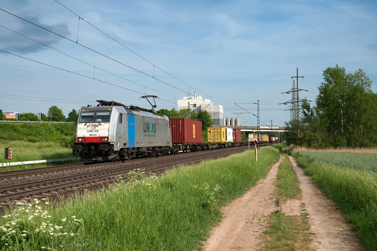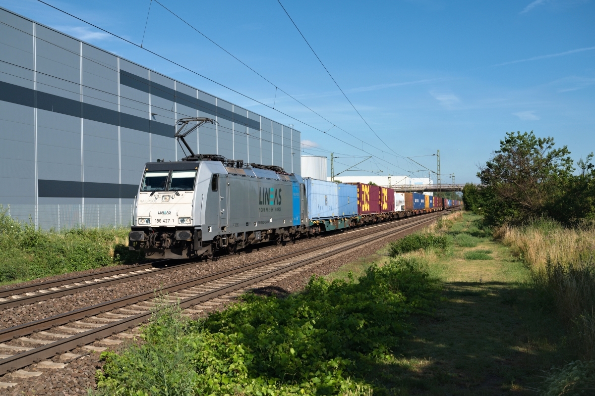 Dto. 186 427-1 am 28.06.2022 im aktuellen Lines Design bei Groß-Gerau mit