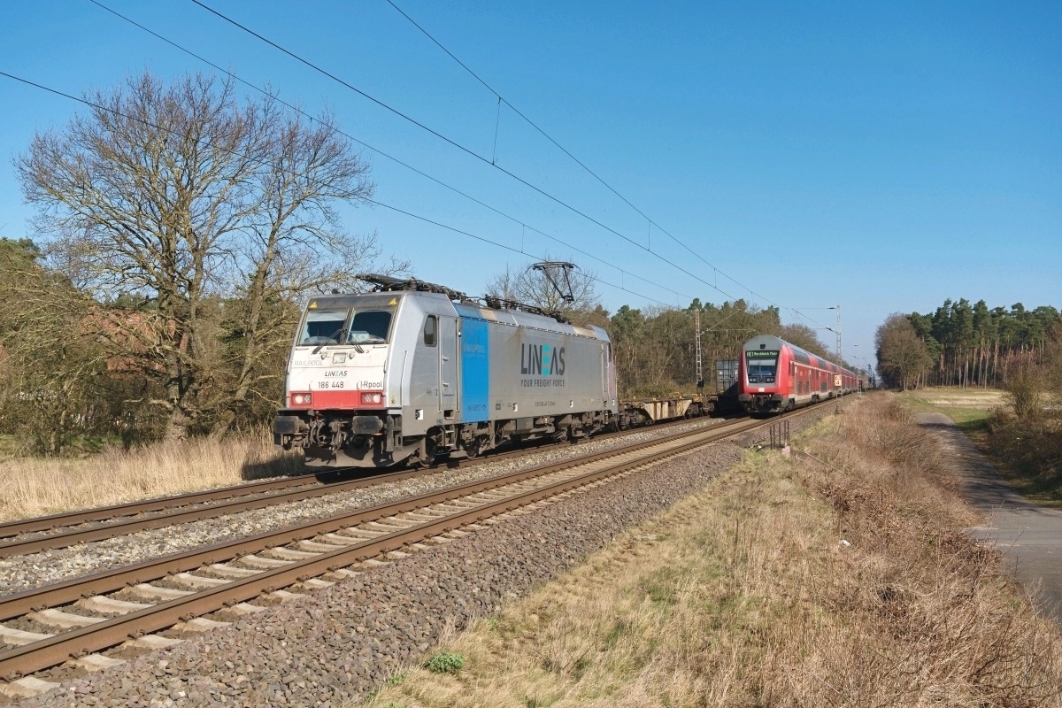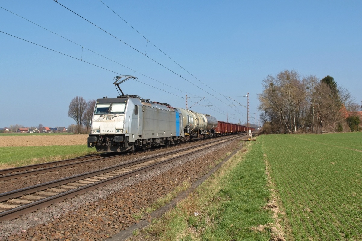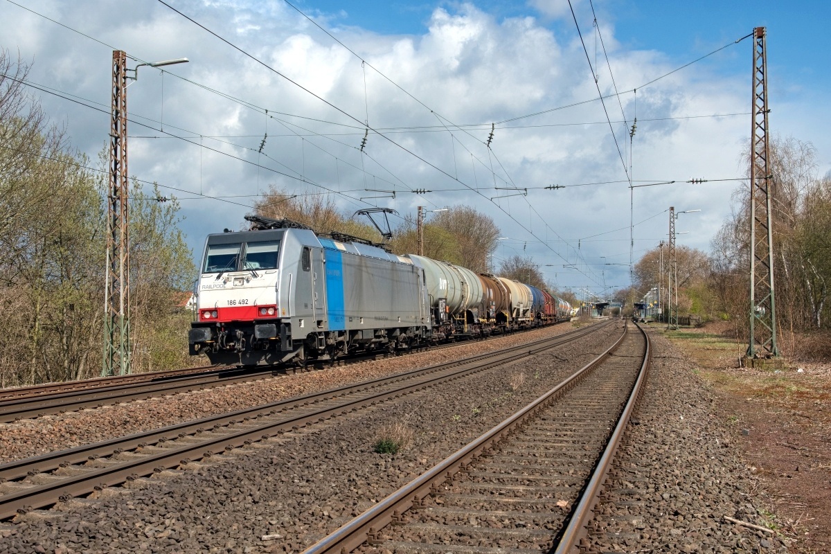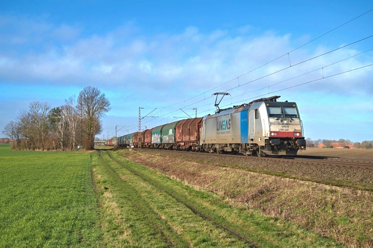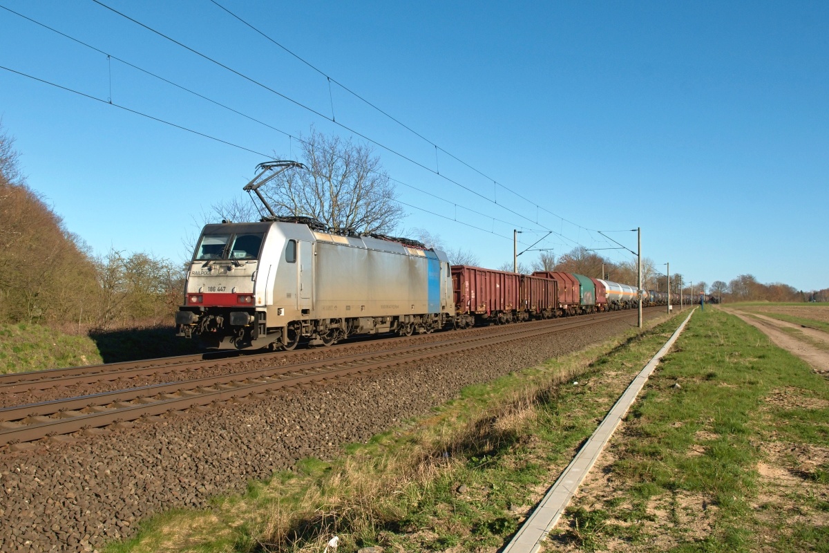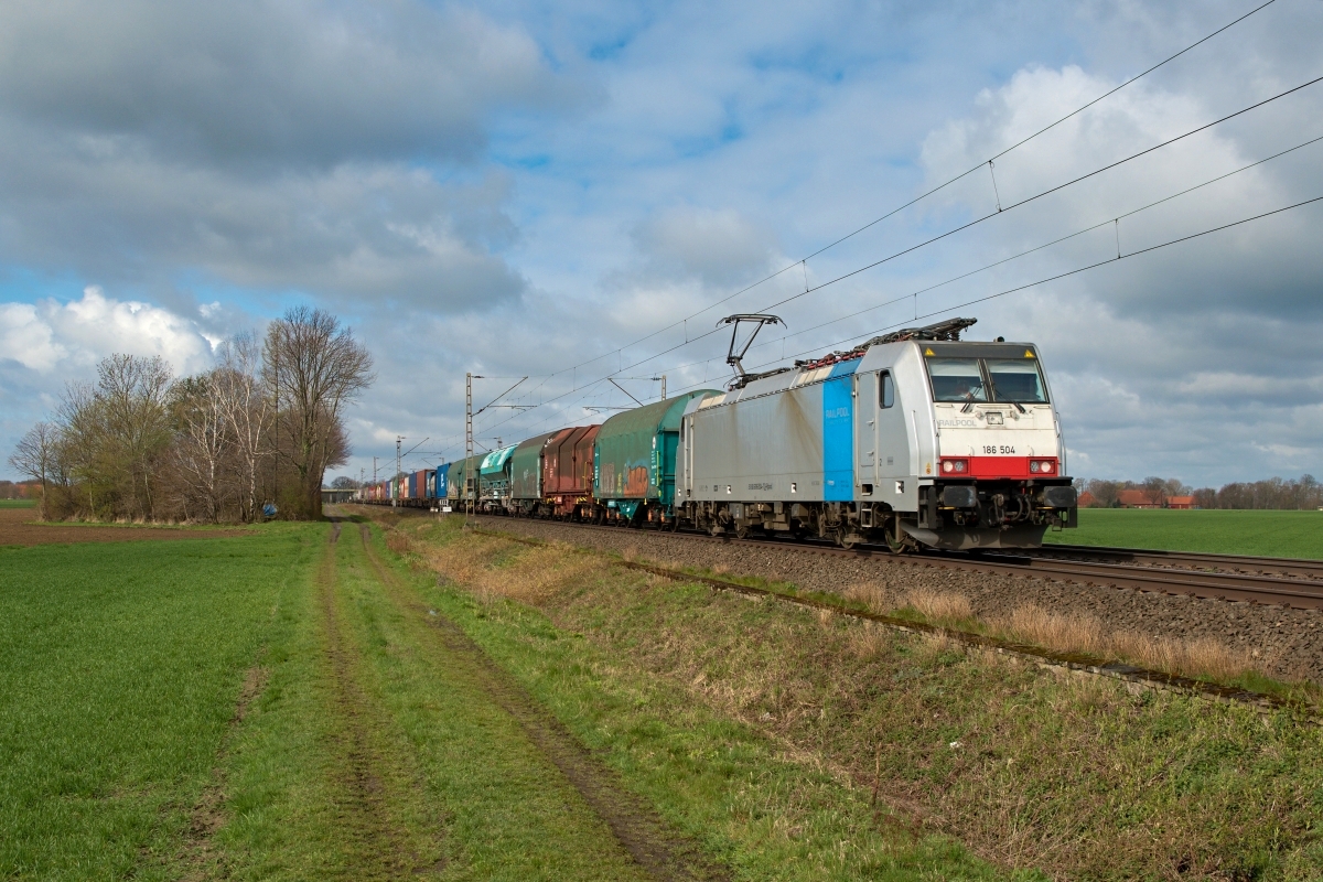 Dto. 186 448-7 am 24.03.2022 als Umleiter bei Bückeburg (HBKB) mit dem