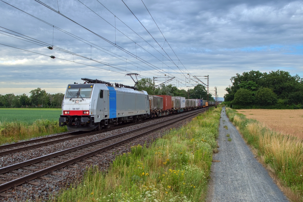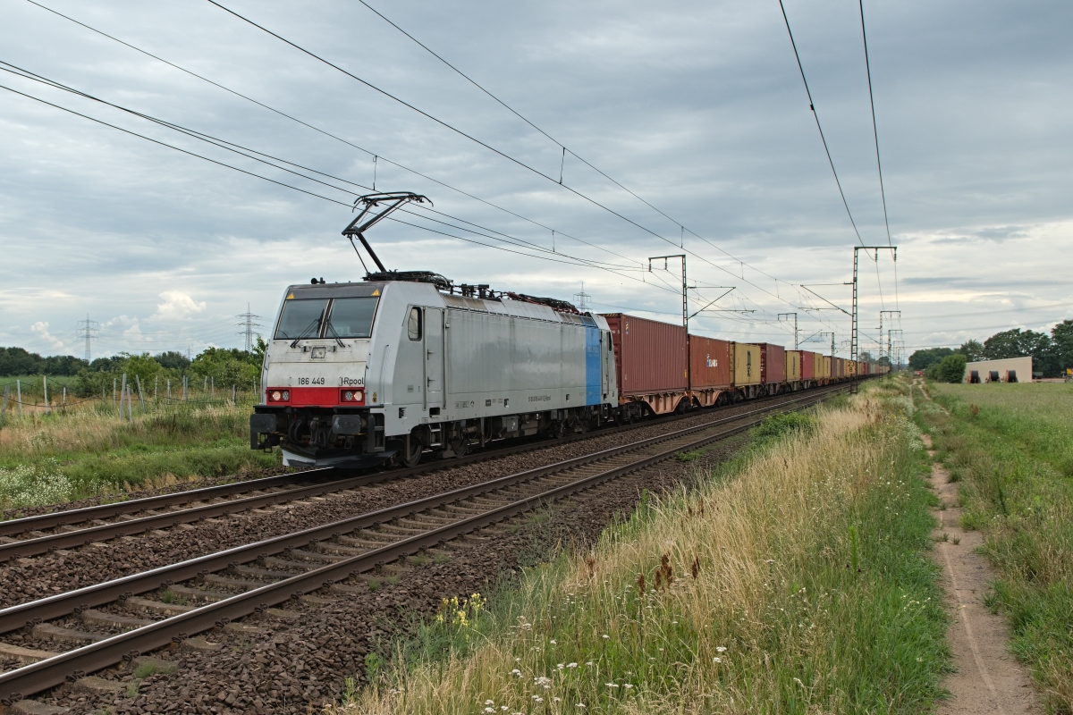 Dto. 186 449-5 am 08.07.2021 bei Klein-Gerau (FKGE) mit dem DGS 43982 von