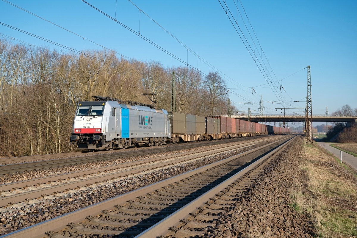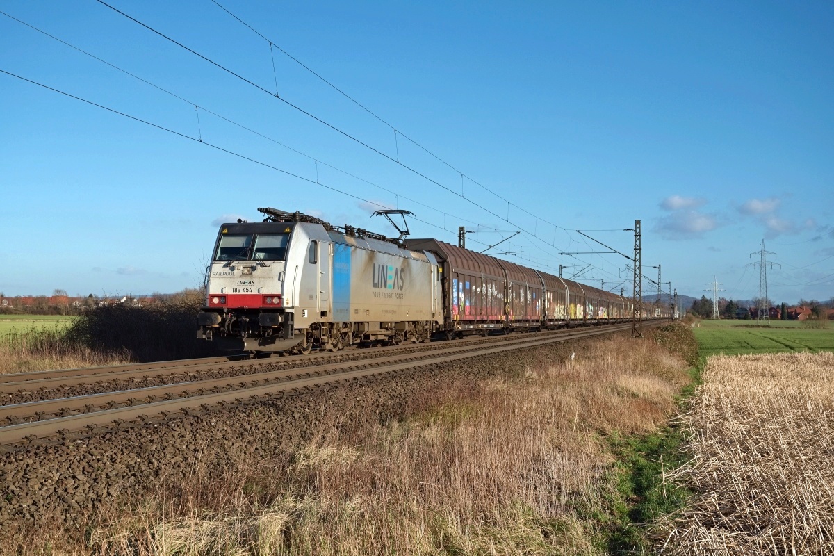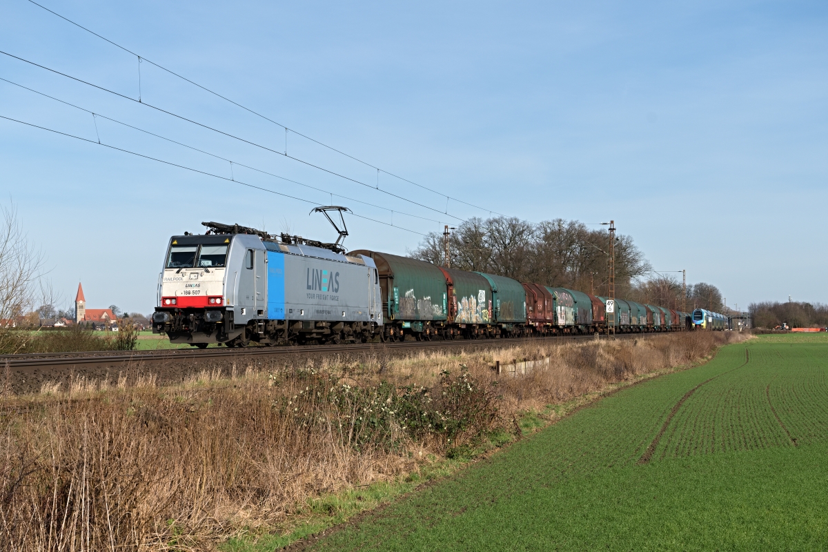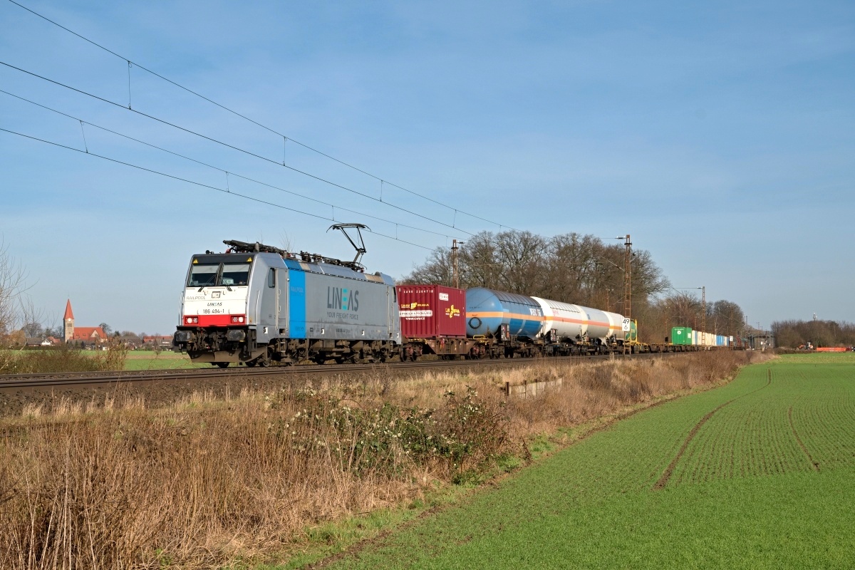 Dto. 186 384-4 im aktuellen Lineas Design am 10.03.2022 bei Bückeburg (HBKB)