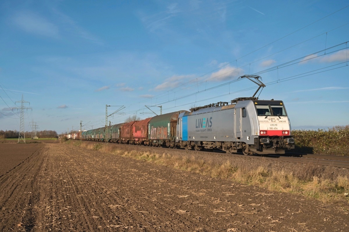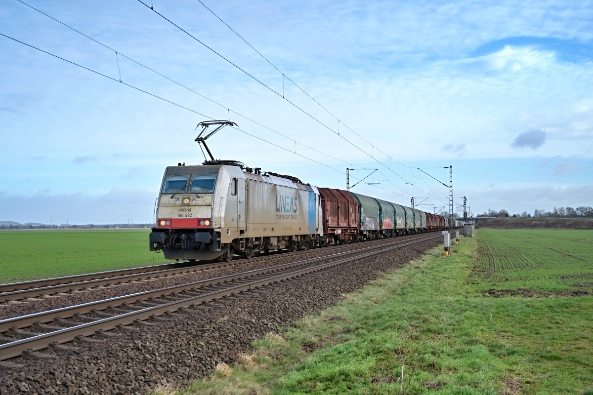 Dto. 186 446-1 im aktuellen Lineas Design am 02.03.2022 im Bückeburger Bf