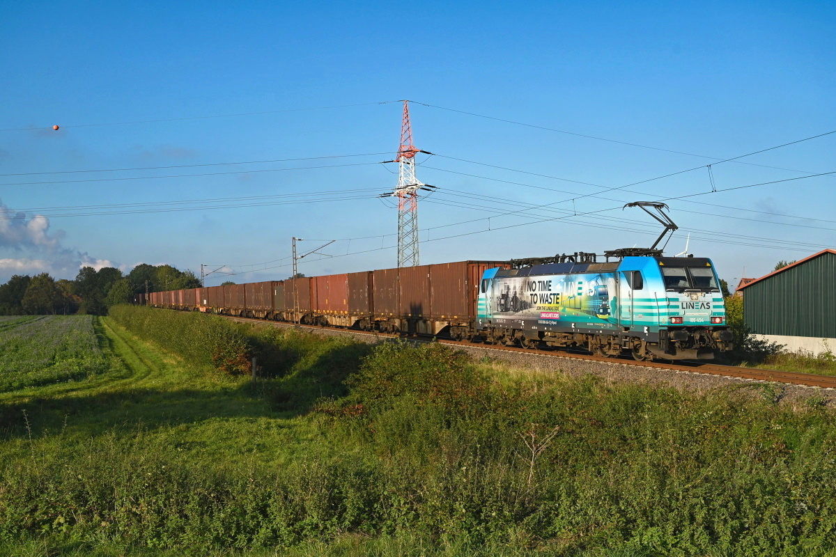 mit einem Containerzug Rtg. Süden/Wunstorf (HWUN)...