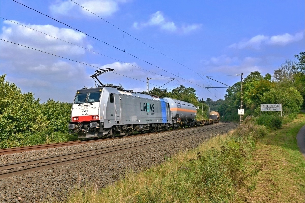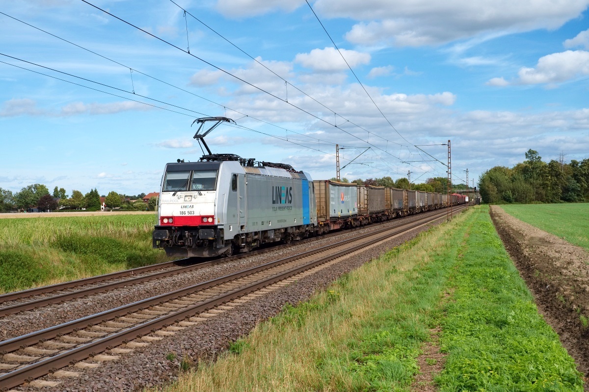 Dto. 186 503-9 am 20.09.2023 bei Kirchhorsten (HKHN) mit dem DGS 49726 von