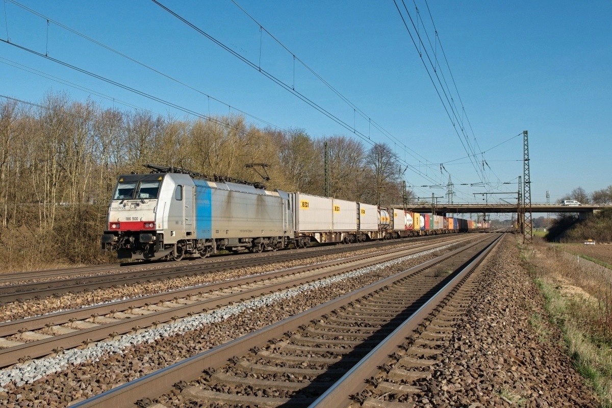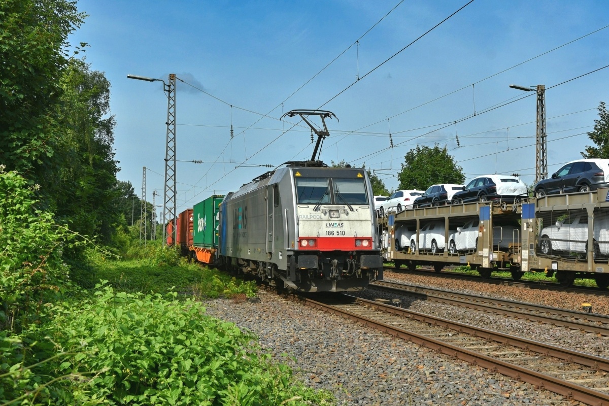 Lineas 186 510-4 mit ihrem Zug wurde auf Gleis 1 "zwischengeparkt"...