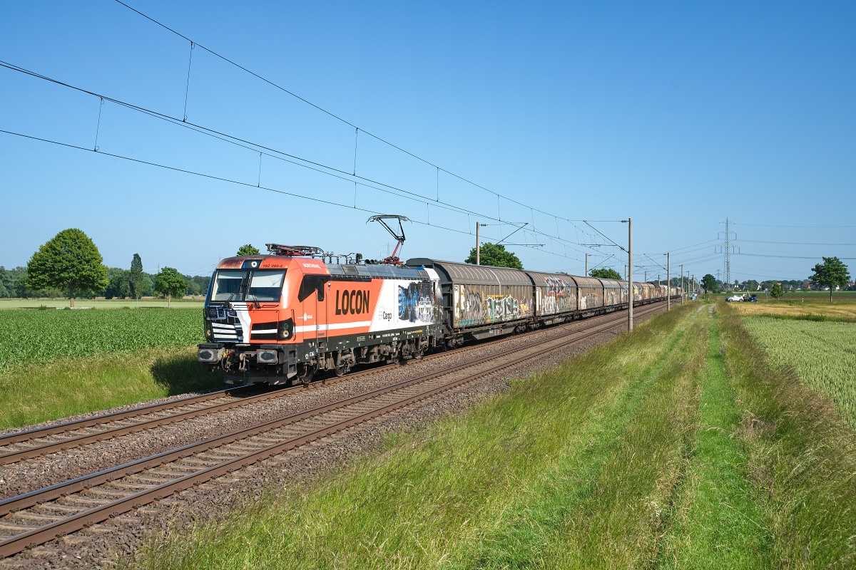 Dto. 187 086-4 am 20.07.2023. Hier passierte die Lok den Bf Neubeckum