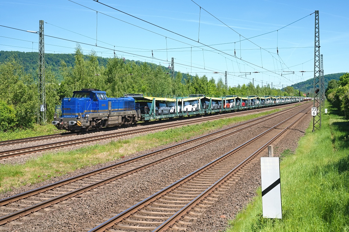 war hier am 13.06.2023 bei Woltorf (HWOT) mit einem (fast) Leer-CT-Zug Rtg.