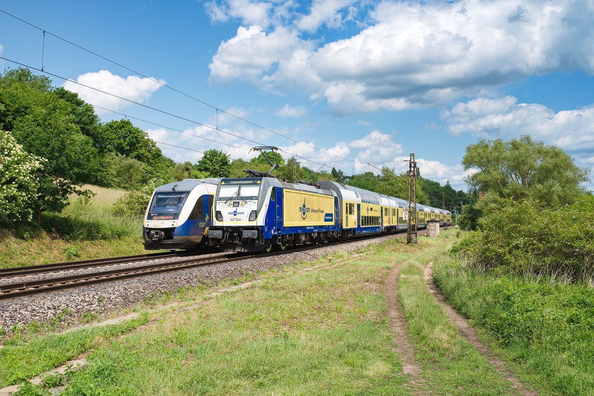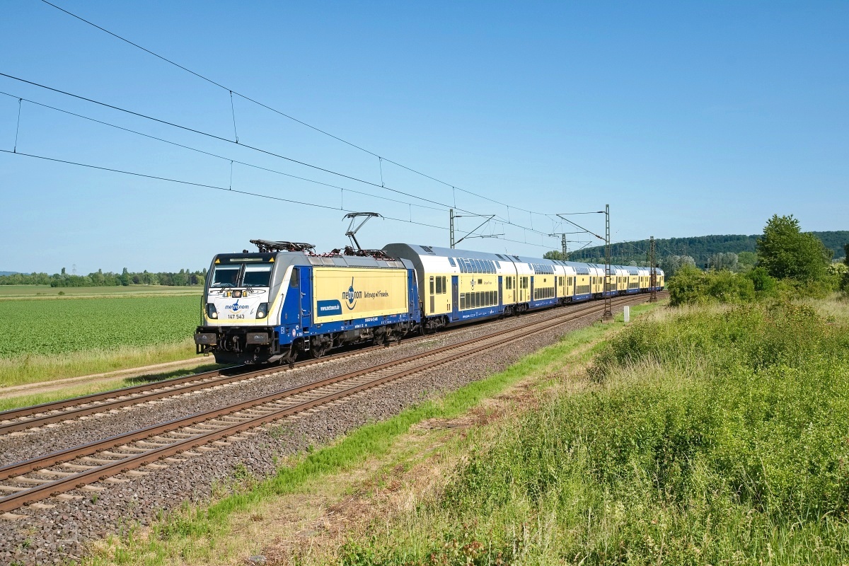 Dto. 147 544-1 am 08.09.2023 bei Elze (HELZ)mit dem Metronom (82345)