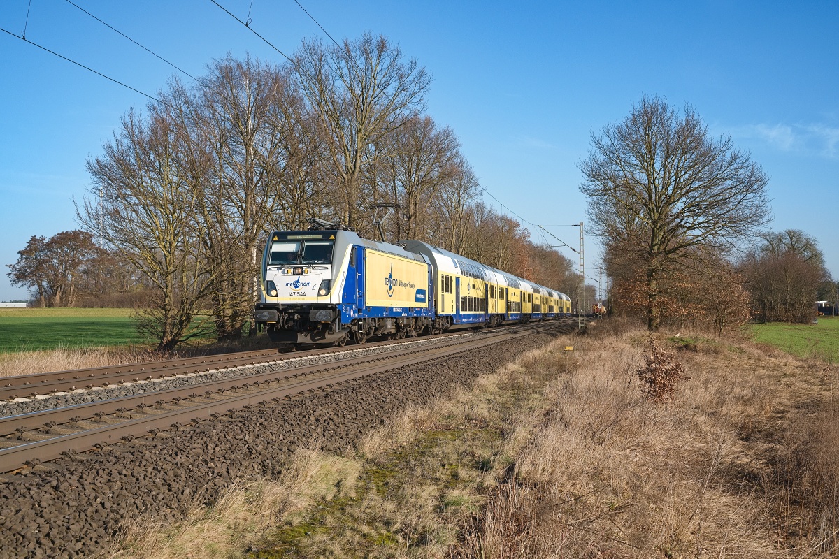 Dto. 147 544-1 im Morgenlicht am 27.02.2026 bei Poggenhagen (HPOG) mit einem