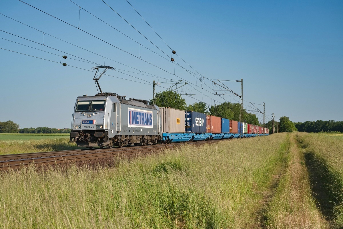 Dto. 386 018-6 mit aktuellem Türstiicker "30 Years Metrans" bei Bückeburg