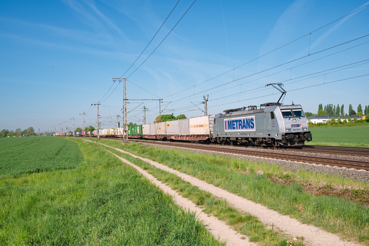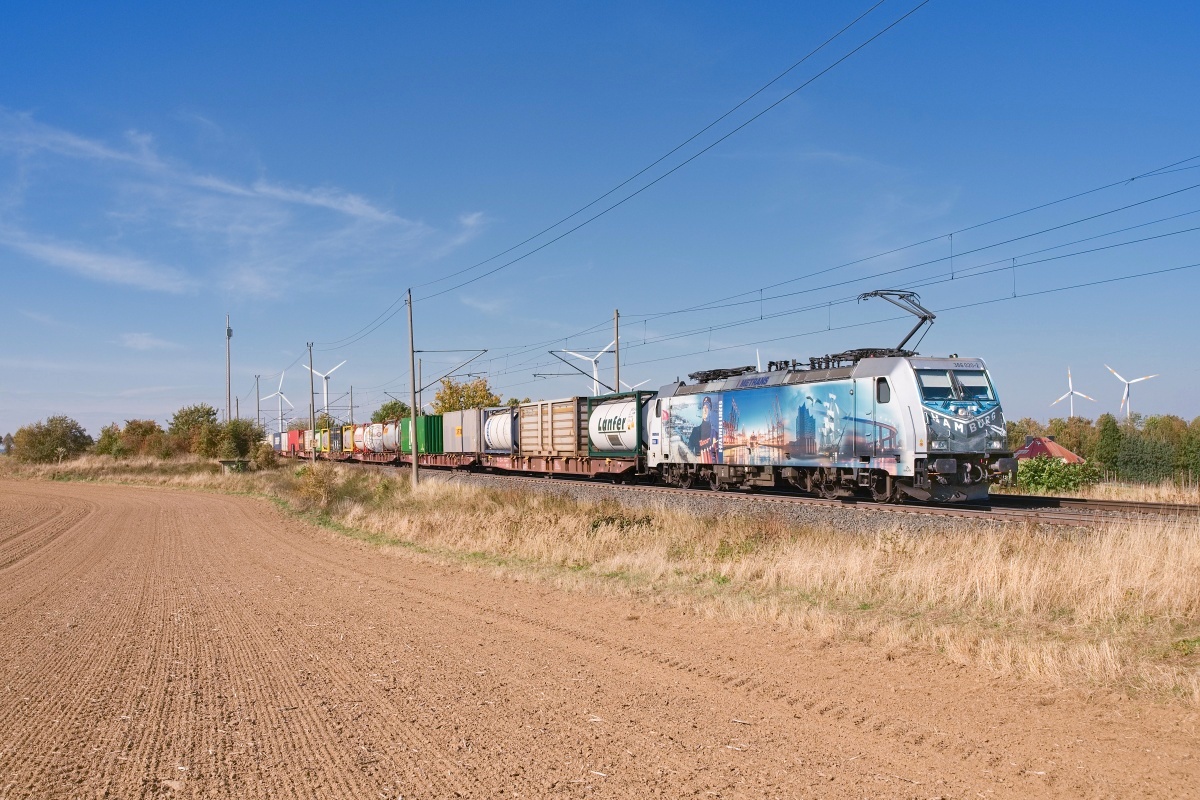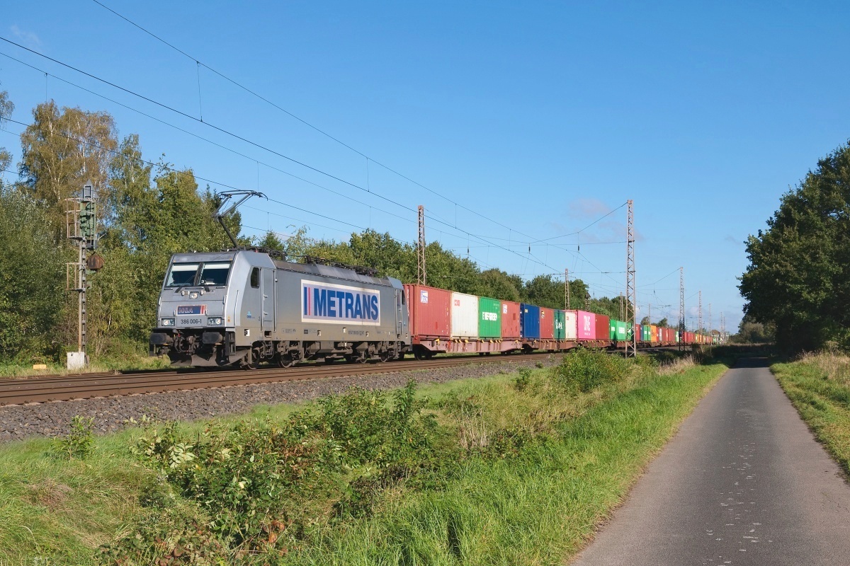 Dto. 386 006-1 am 06.10.2024 bei Dörverden (HDVD) mit einem CT-Zug Rtg.