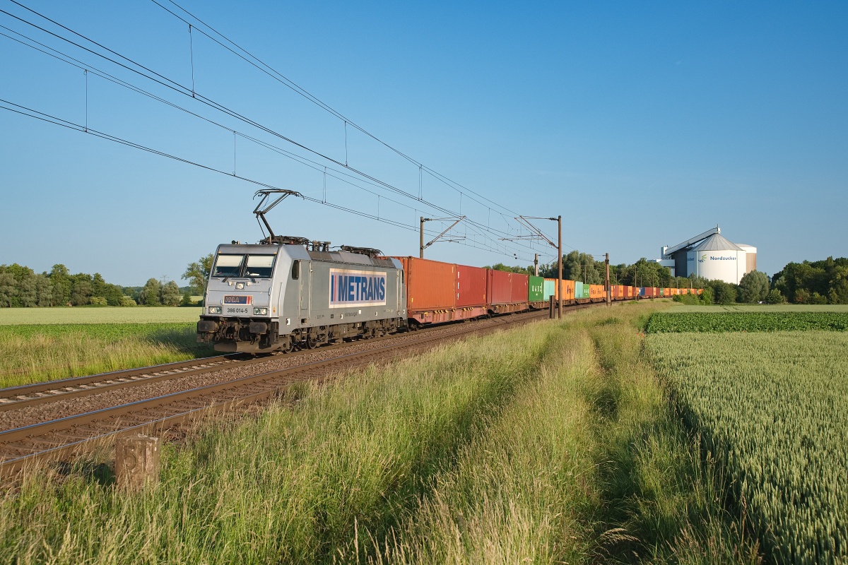 Dto. 386 020-2 am 26.07.2018. Hier passierte die Lok den Bahnhof Elze