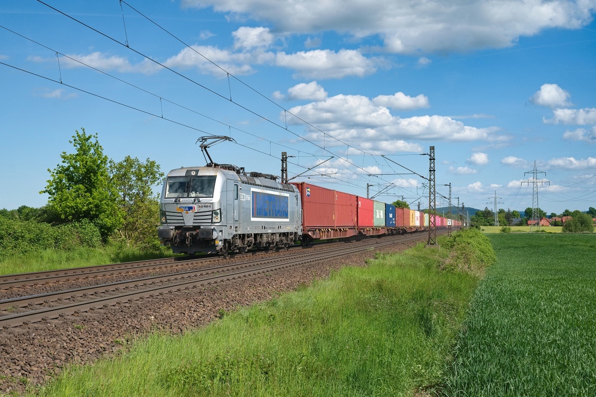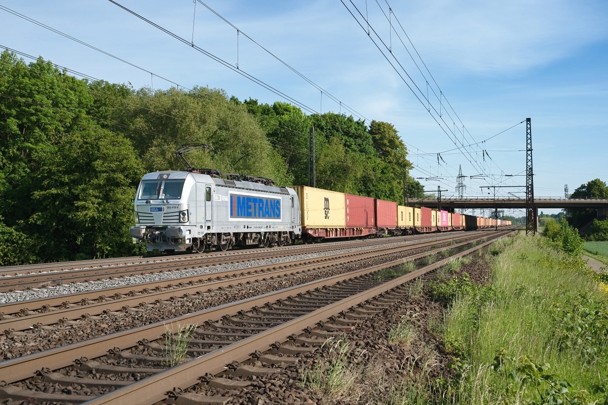 mit einem Containerzug Rtg. Westen/Braunschweig (HBS) unterwegs...