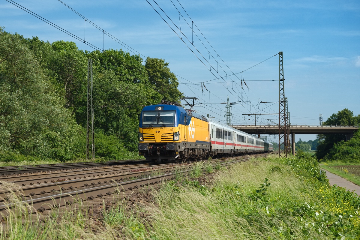 Dto. 193 499-1 am 08.05.2024 bei Lindhorst (HLH) Vornhagen mit dem IC 141