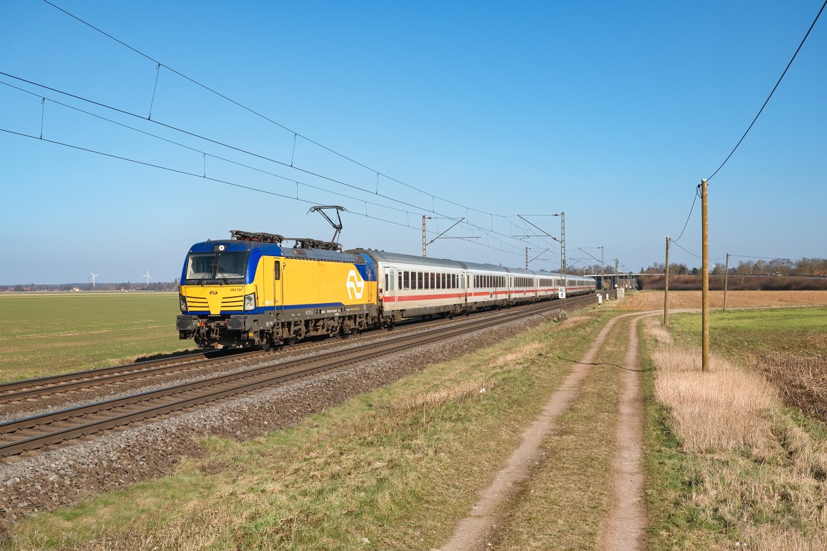 Dto. 193 759-8 am 06.04.2025 bei Kirchhorsten (HKHN) mit dem IC 146 von