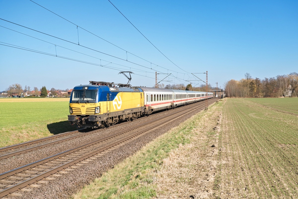 Dto. 193 935-4 am 15.04.2025 bei Stadthagen mit dem IC 141 von Amsterdam