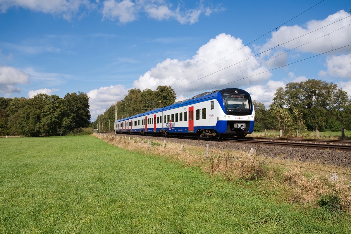 fuhr hier am 18.05.2022 gerade aus dem Bahnhof Twistringen (HT) als RS2 (83206)