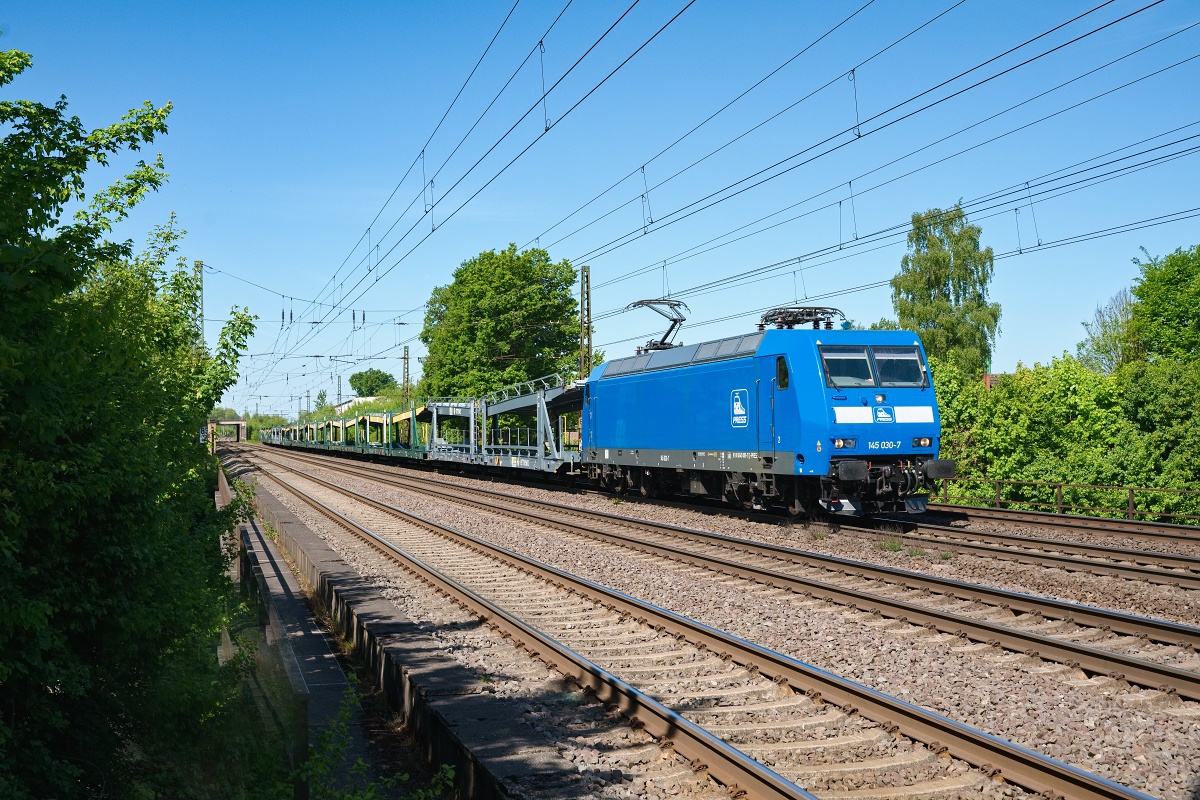 Dto. 145 030-7 am 10.05.2025 wieder im blauen Press-Design bei Gohfeld