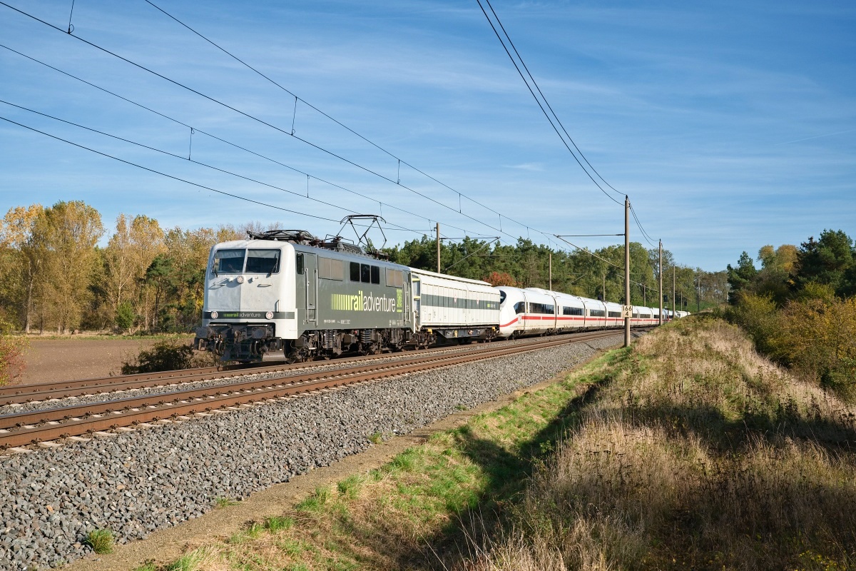 Dto. 111 215-0 am 29.09.2024 bei Ovelgünne (LOV) mit der Überführung von der