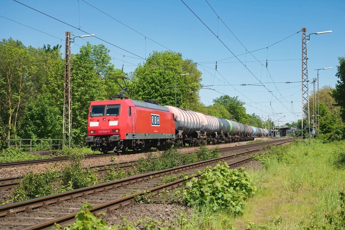 Dto. 145 070-9 im aktuell blauen RBH Design am 15.05.2024 bei Bückeburg