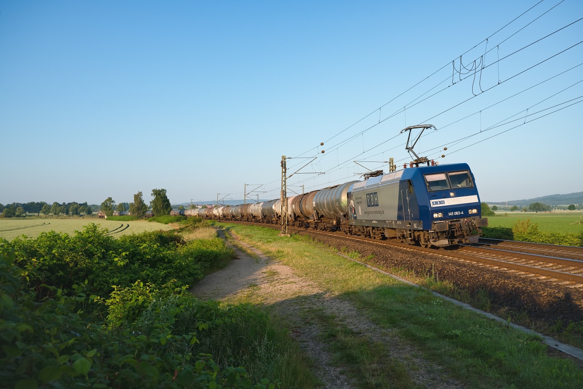 Dto. 145 101-2 am 30.07.2021 früh morgens bei Bückeburg (HBKB) mit