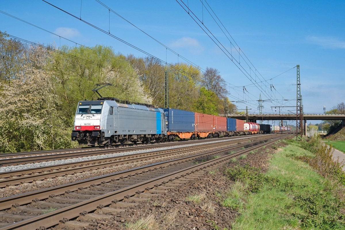 Dto. 186 506-2 am 11.04.2025 bei Porta-Westfalica (HPTH) mit dem DGS 41500