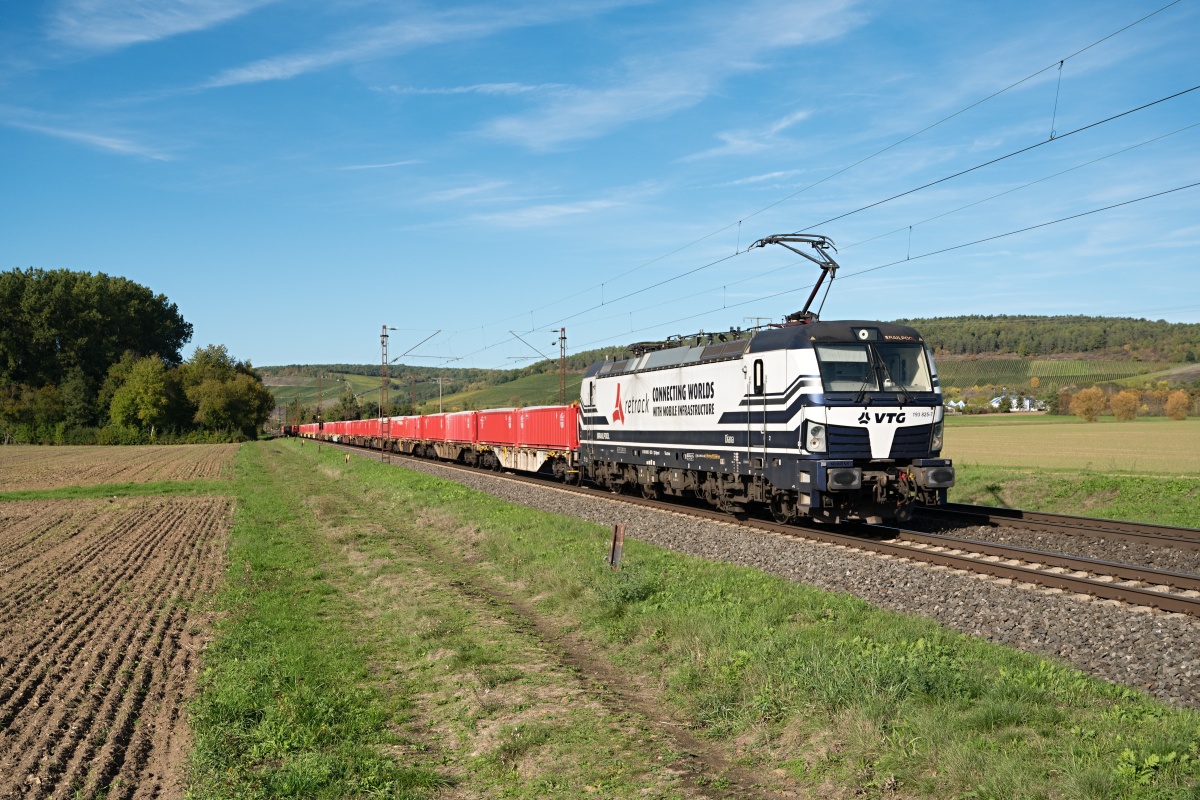 Dto. 193 811-7 am 06.10.22 bei Harrbach im Maintal im aktuellen Werbedesign "Conecting Worlds" mit dem Walter KLV Rtg.