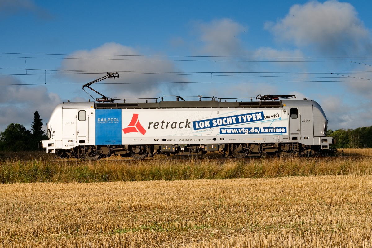 Dto. 193 993-3 mit Werbefläche "Retrack - Lok sucht Typen"