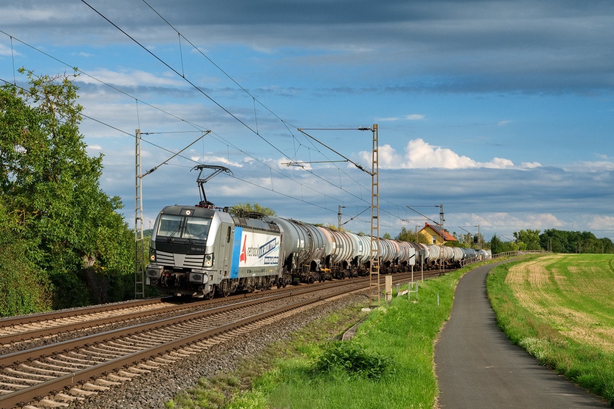 Kesselwagenzug in Rtg. Süden/Würzburg-Zell...